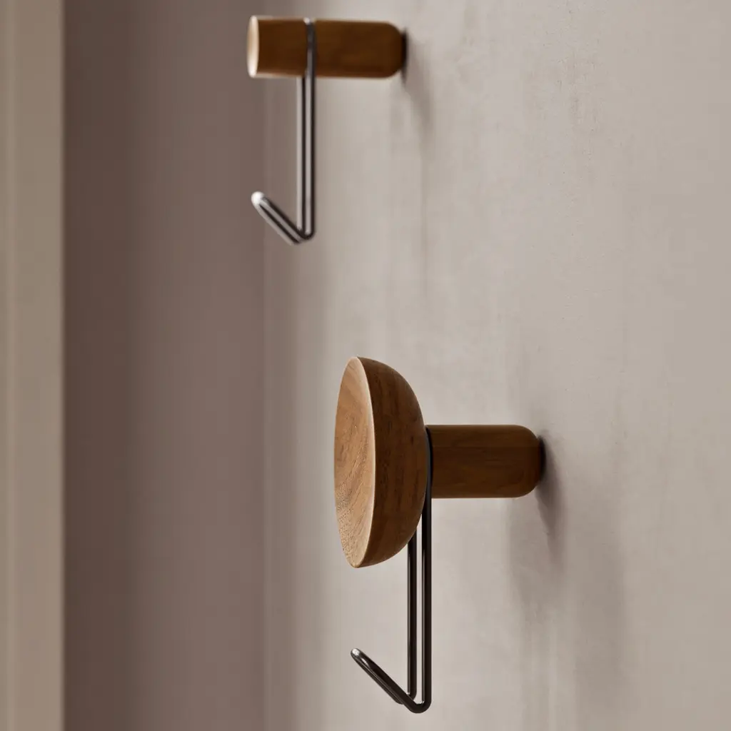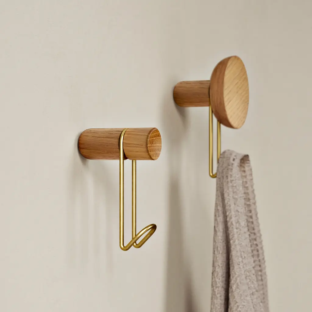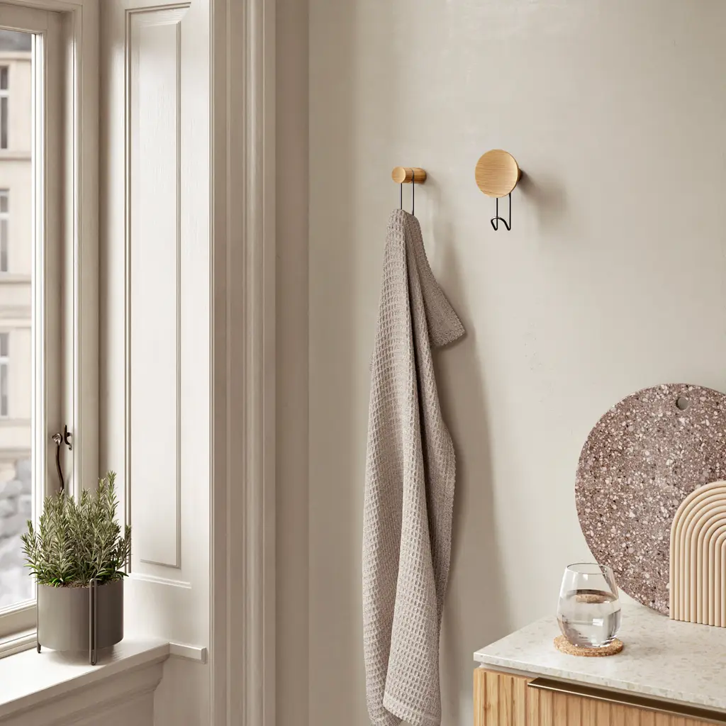 Practical yet also elegant, the Woud Around Wall Hanger instantly adds a sculptural accent to living spaces. 201 Design Studio created the series for Danish brand Woud with a minimalist aesthetic that defies temporary trends and complements any décor. Each hook is made from solid oak and metal, bringing together two contrasting materials in a harmonious design. The front of the wall hanger boasts a concave surface that invites you to touch the oak and admire its textures up close. A carved section houses the metal hook that offers a convenient way to hang bags, coats, hats, or towels. Perfect for entrance areas, bedrooms, or even bathrooms, the Woud Around Wall Hanger comes in three wood versions, all available with a choice of two metal hook finishes.