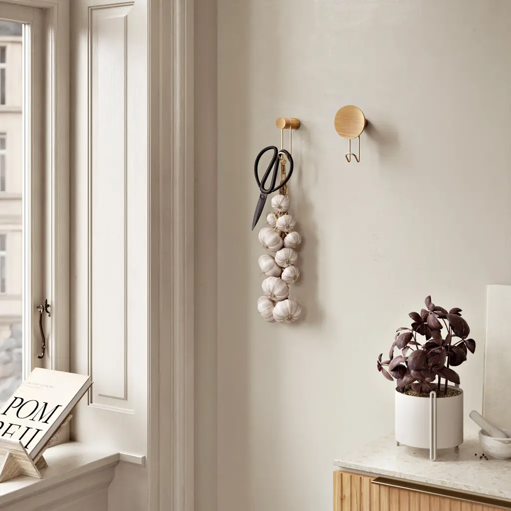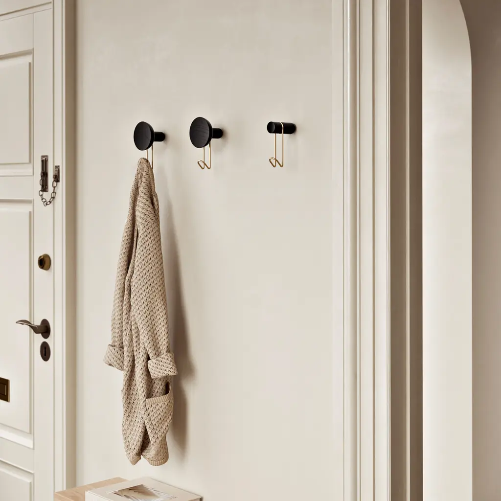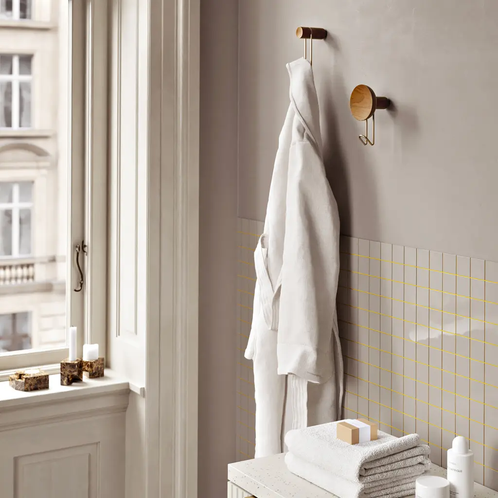 Practical yet also elegant, the Woud Around Wall Hanger instantly adds a sculptural accent to living spaces. 201 Design Studio created the series for Danish brand Woud with a minimalist aesthetic that defies temporary trends and complements any décor. Each hook is made from solid oak and metal, bringing together two contrasting materials in a harmonious design. The front of the wall hanger boasts a concave surface that invites you to touch the oak and admire its textures up close. A carved section houses the metal hook that offers a convenient way to hang bags, coats, hats, or towels. Perfect for entrance areas, bedrooms, or even bathrooms, the Woud Around Wall Hanger comes in three wood versions, all available with a choice of two metal hook finishes.