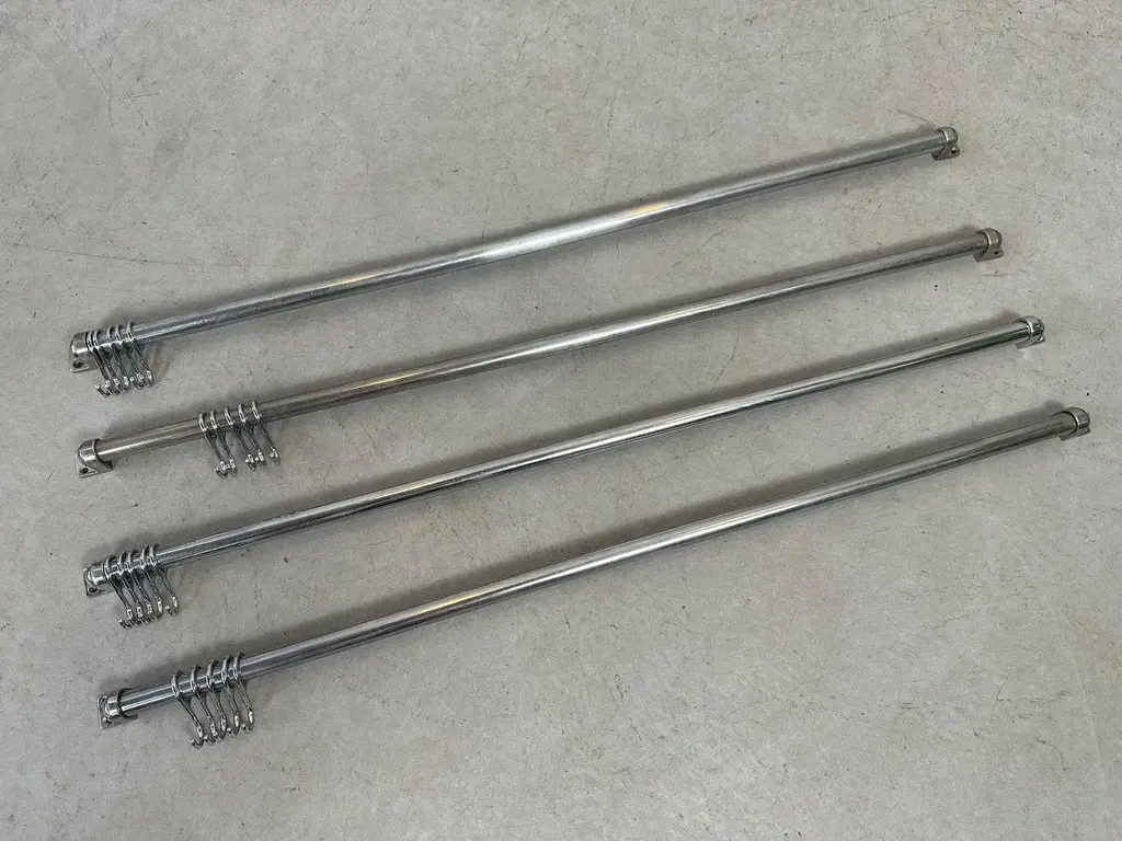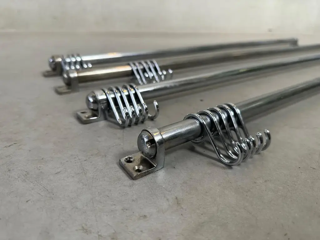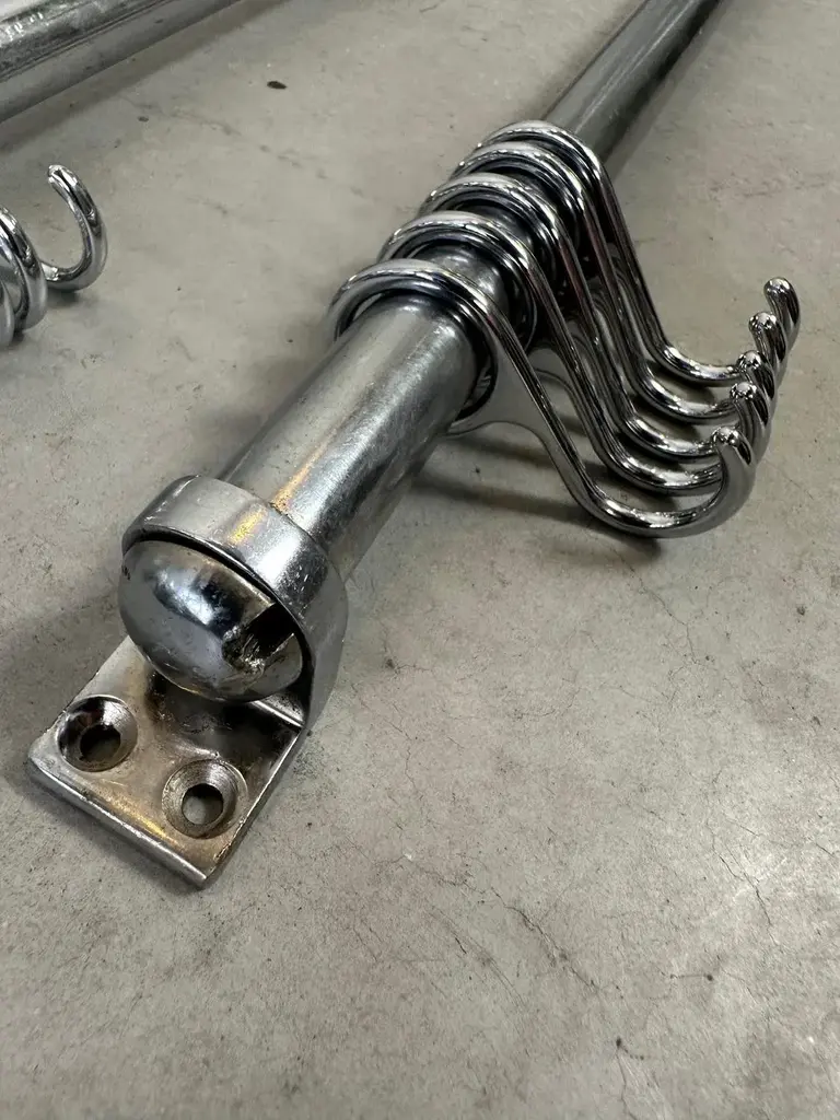 Rare art deco coat rack from an old NMBS train set. 1930s. Chrome-plated solid copper. Design: Henry van de Velde. Manufactured by A. Cousin Vilvoorde. Equipped with 5 hooks. Nice for the bathroom, in the hall or even for the kitchen (pots and pans). Width: 89cm. Depth: 3cm. Height: 2.5cm. Weight: 1.4kg. This piece has an attribution mark, I am sure that it is completely authentic and take full responsibility for any authenticity issues arising from misattribution