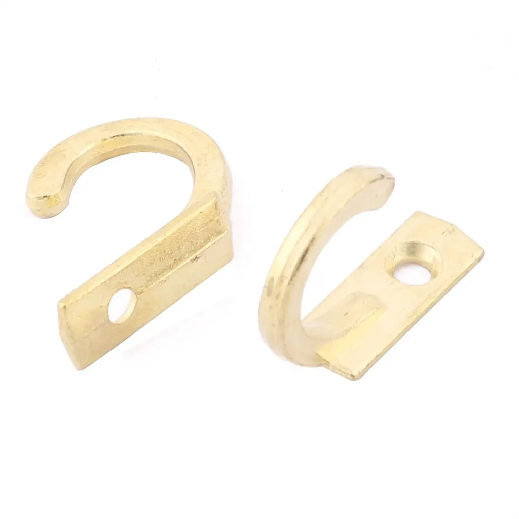 Color: Gold Tone; Material: MetalPackage Content: 10 x Hanger Hooks; Product Name: Hanger HookTotal Size: 23 x 18mm/0.9'' x 0.7''(L*W); Size: Base Size: 17 x 7mm/0.67'' x 0.28''(L*W))Product Weight: 28g; Mounting Hole Dia.: 2.5mm/0.1''Screw Size: 13 x 5mm/0.51'' x 0.2''(D*H)Holds cables, hoses, extension cords, and light power tools neatly off the ground.Organizes coats, jackets, hats, robes, bath towels, purses, leashes and more.Wall mounting hardware is included; Great for the kitchen, entryway, bathroom, closet.This productor is contain in Screws about 16, and each one needs 1 screw to install.