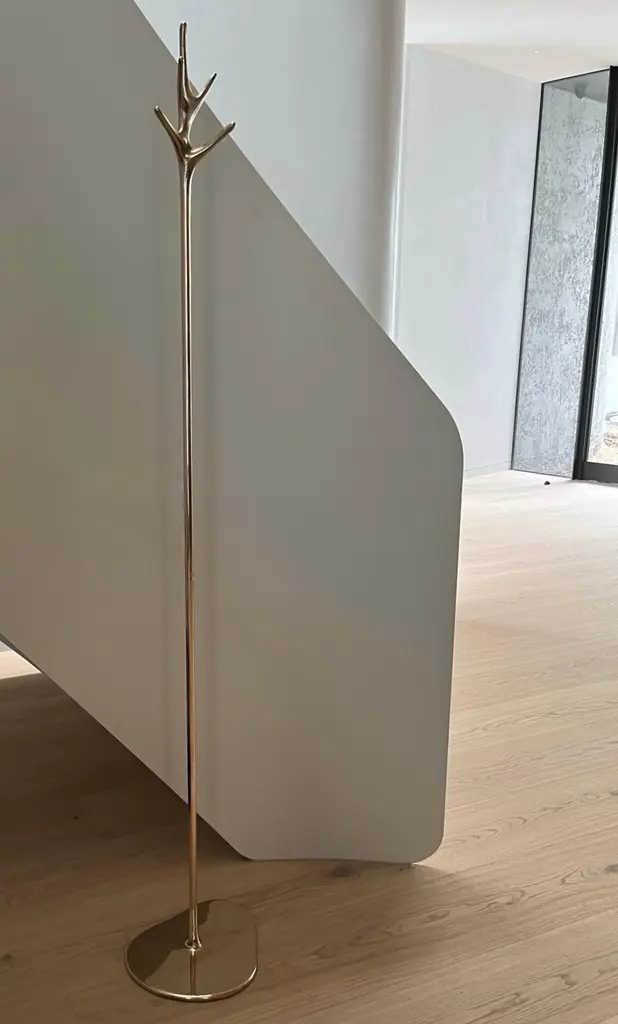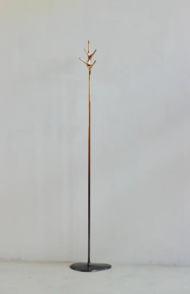 The 'Lovelock' coat stand is a stunning piece of art that combines elegance and utility. It was created by Daniel Barbera, a renowned designer who specializes in sandcasting techniques. The base of the coat stand is made from solid bronze that is cast in sand molds and then polished to a mirror-like finish. The result is a smooth and shiny surface that reflects light and creates a striking contrast. The 'Lovelock' coat stand is more than just a functional item; it is a sculpture that showcases Barbera's mastery of form and Material.Designed and made in AustraliaSize available: 175cm tallCustom heights upon requestBase is 28 x 34cm.Available in 3 finishes- - Polished Bronze- Satin Bronze- Polished and Blackened Bronze