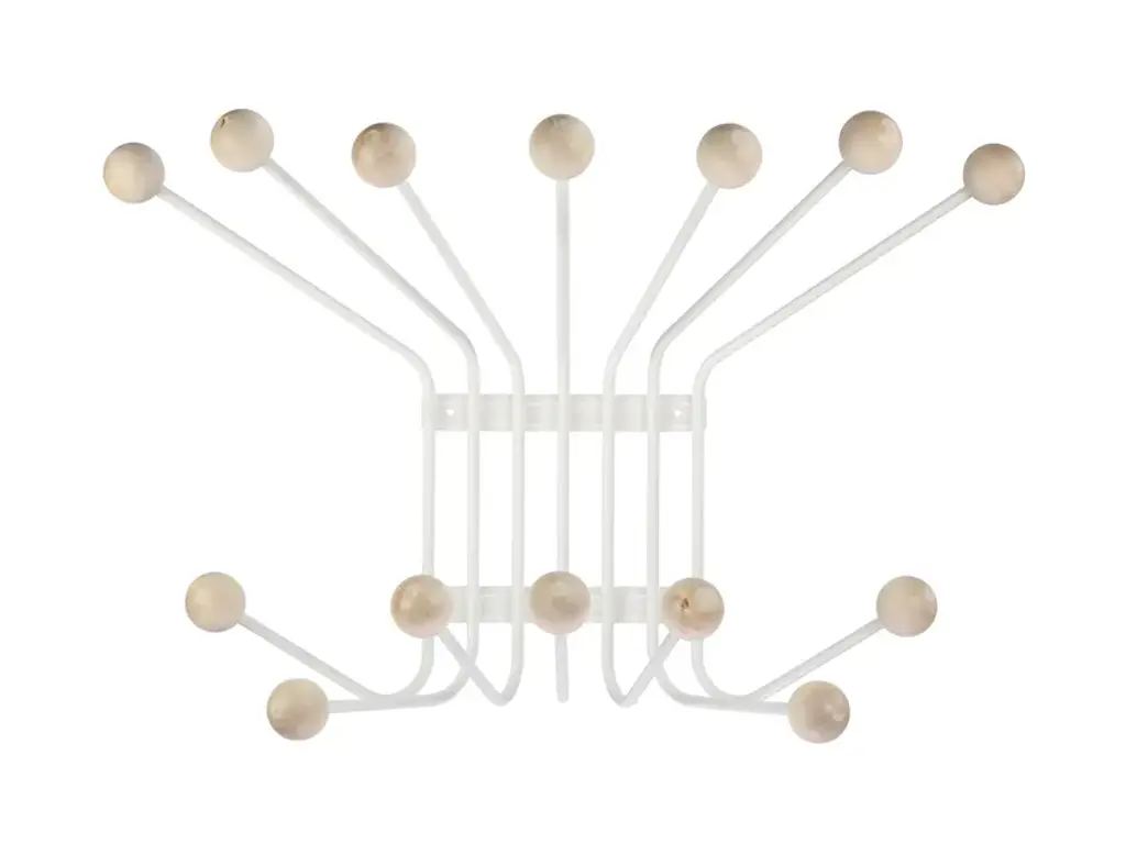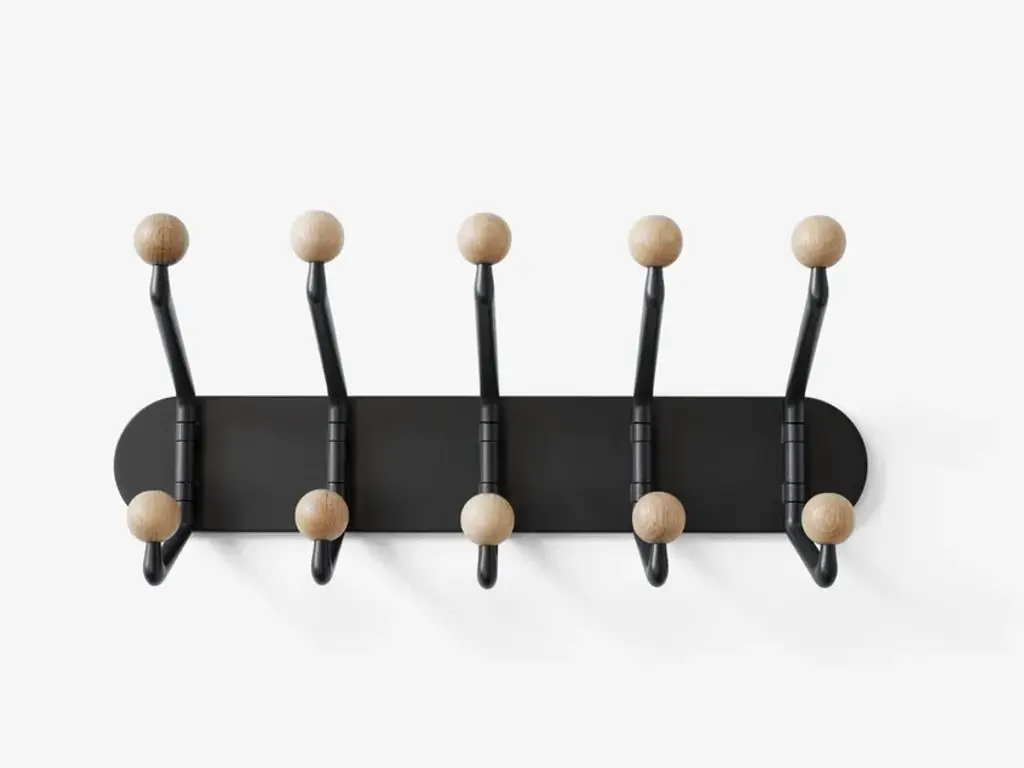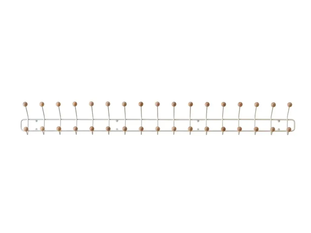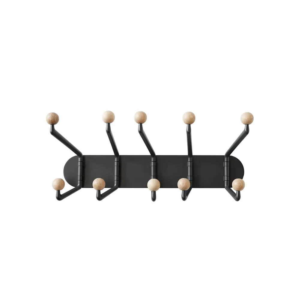 The Bill Horizontal coat rack, designed by Louise Hederström for the Swedish Maze, is part of a collection of modern storage furniture characterized by a minimalist appearance that easily suits any hallway. The geometrical design of the wall-mounted Bill Horizontal coat rack is a combination of a recycled metal frame and playful hooks perfected with round, wooden balls. Complement the storage style with other products from Maze’s Bill collection.