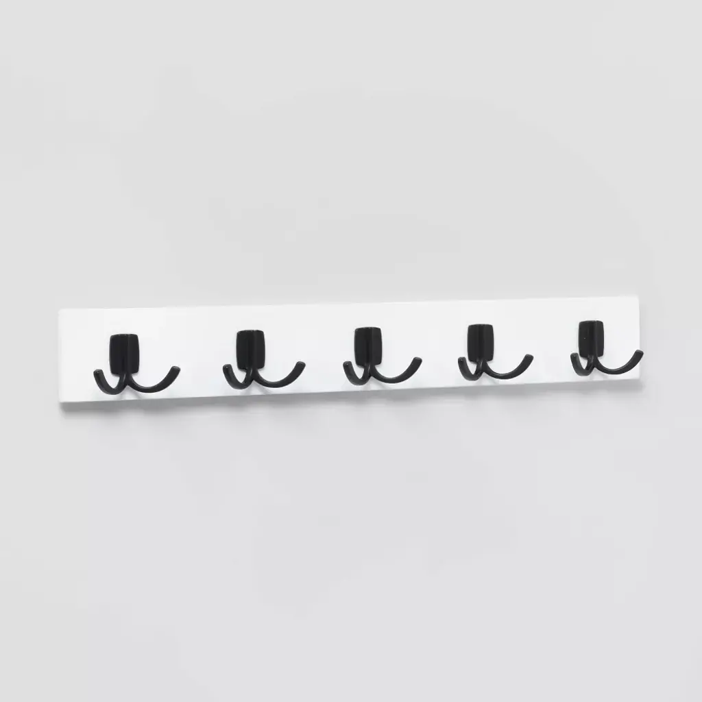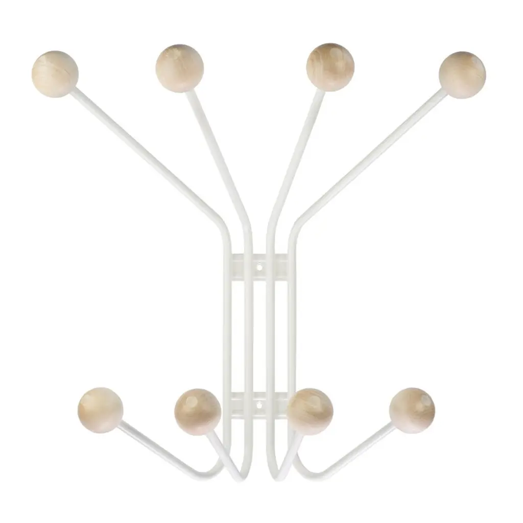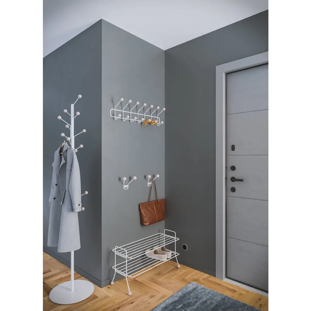 The Bill Horizontal coat rack, designed by Louise Hederström for the Swedish Maze, is part of a collection of modern storage furniture characterized by a minimalist appearance that easily suits any hallway. The geometrical design of the wall-mounted Bill Horizontal coat rack is a combination of a recycled metal frame and playful hooks perfected with round, wooden balls. Complement the storage style with other products from Maze’s Bill collection.
