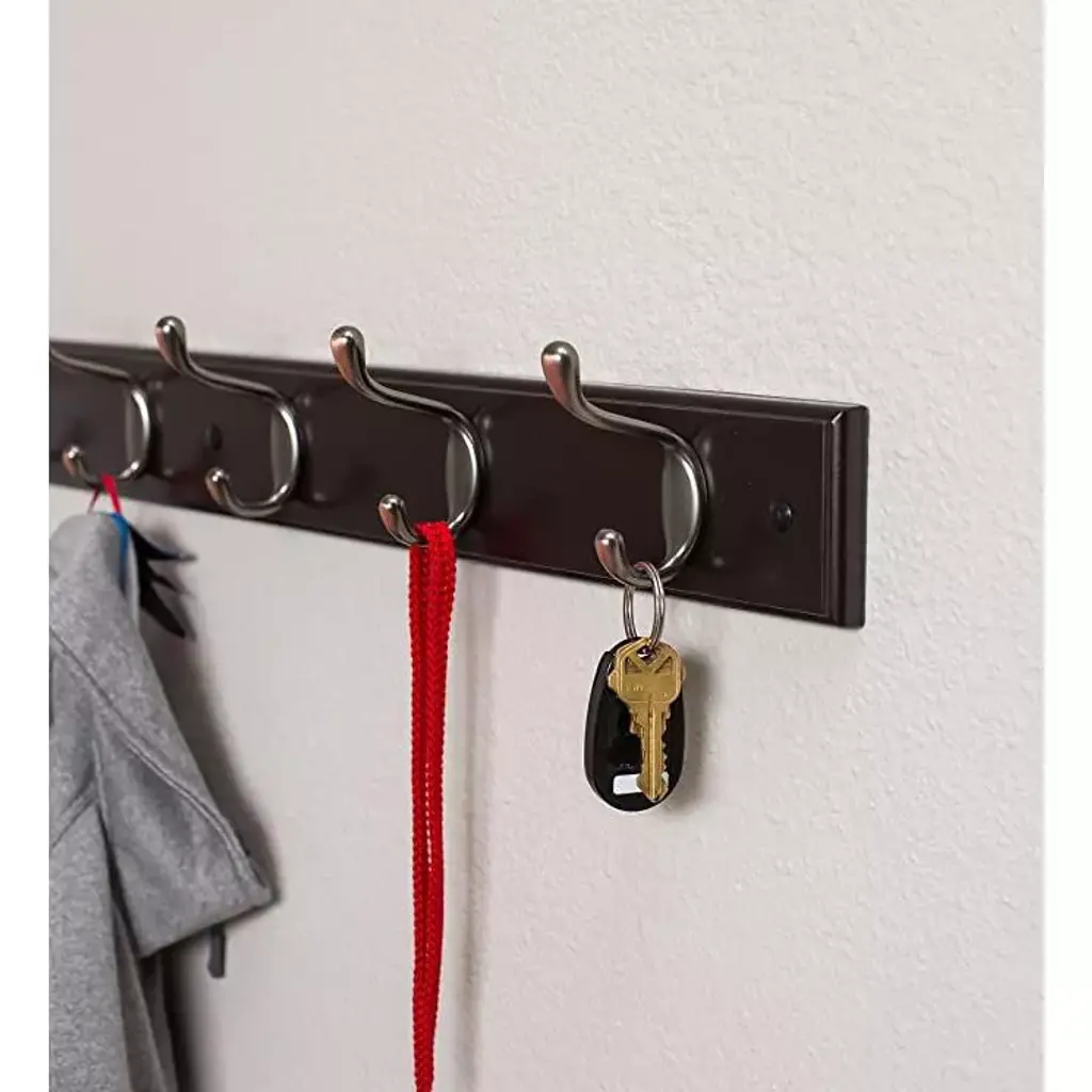 This BirdRock Home Hook Rail features orb hooks and a classic decorative design. Great for use in bedrooms, closets, bathrooms, hallways or foyers. Fits in with any decor. Use for hanging hats, coats, scarves, towels, bags and more. Hardware is included in box. Available in 2 sizes and 3 finishes.