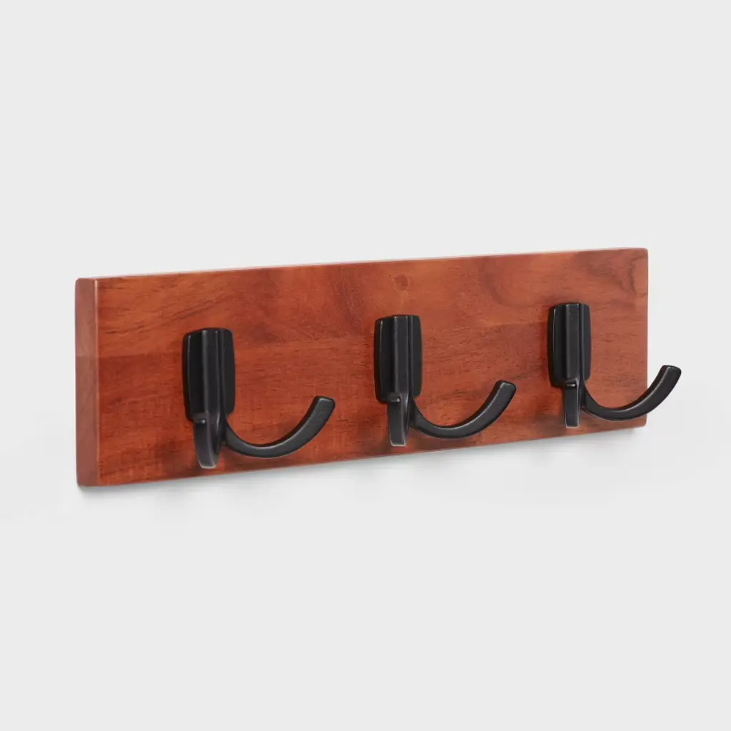 Birdrock Home Tri Hook Coat Rack - 3 Hooks - Wall Mount Hat Rack - Brown Finish - Bronze Hooks