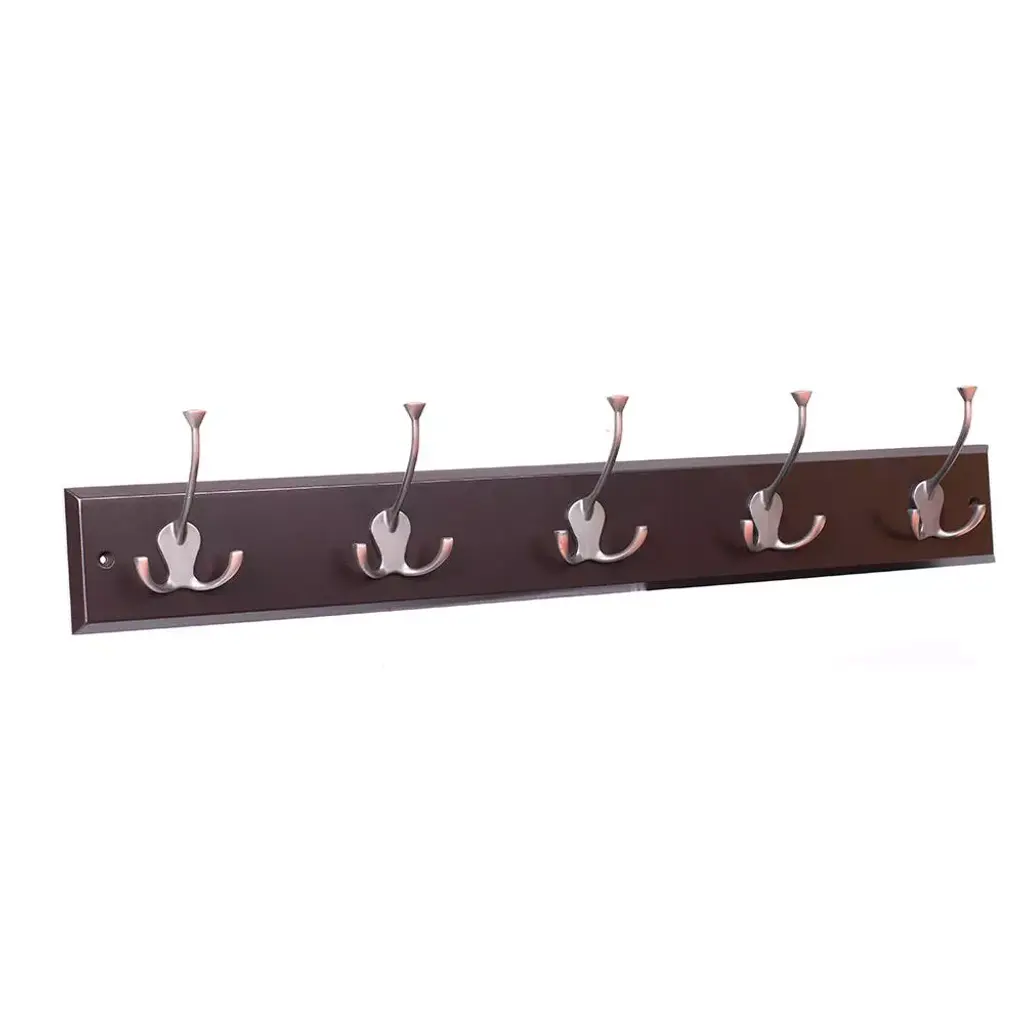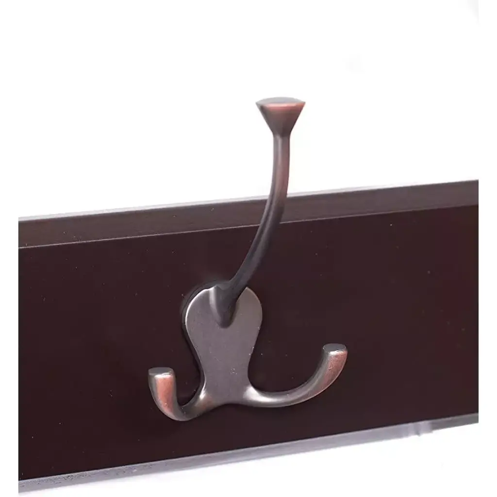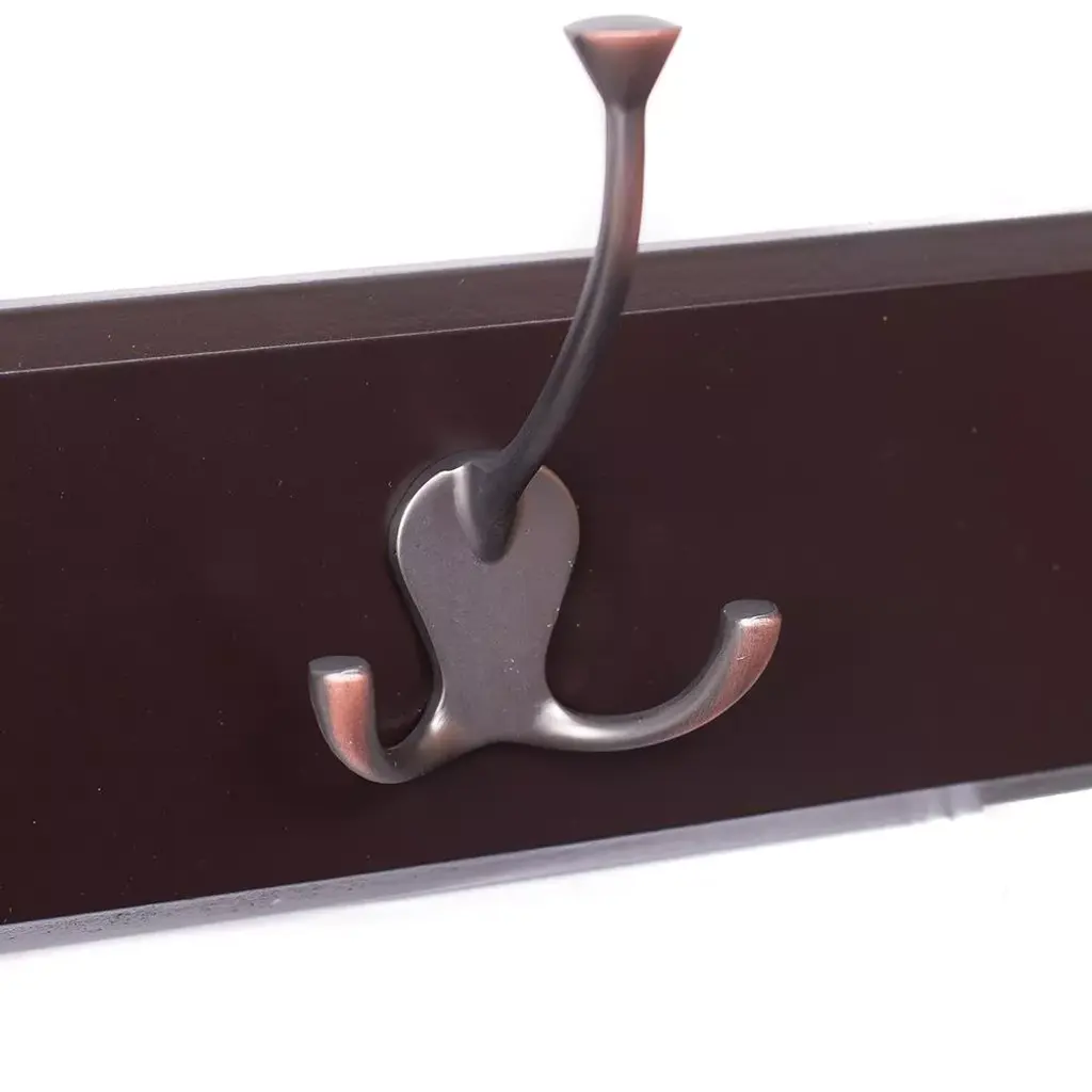 Birdrock Home Tri Hook Coat Rack - 5 Hooks - Wall Mount Hat Rack - Brown Finish - Bronze Hooks