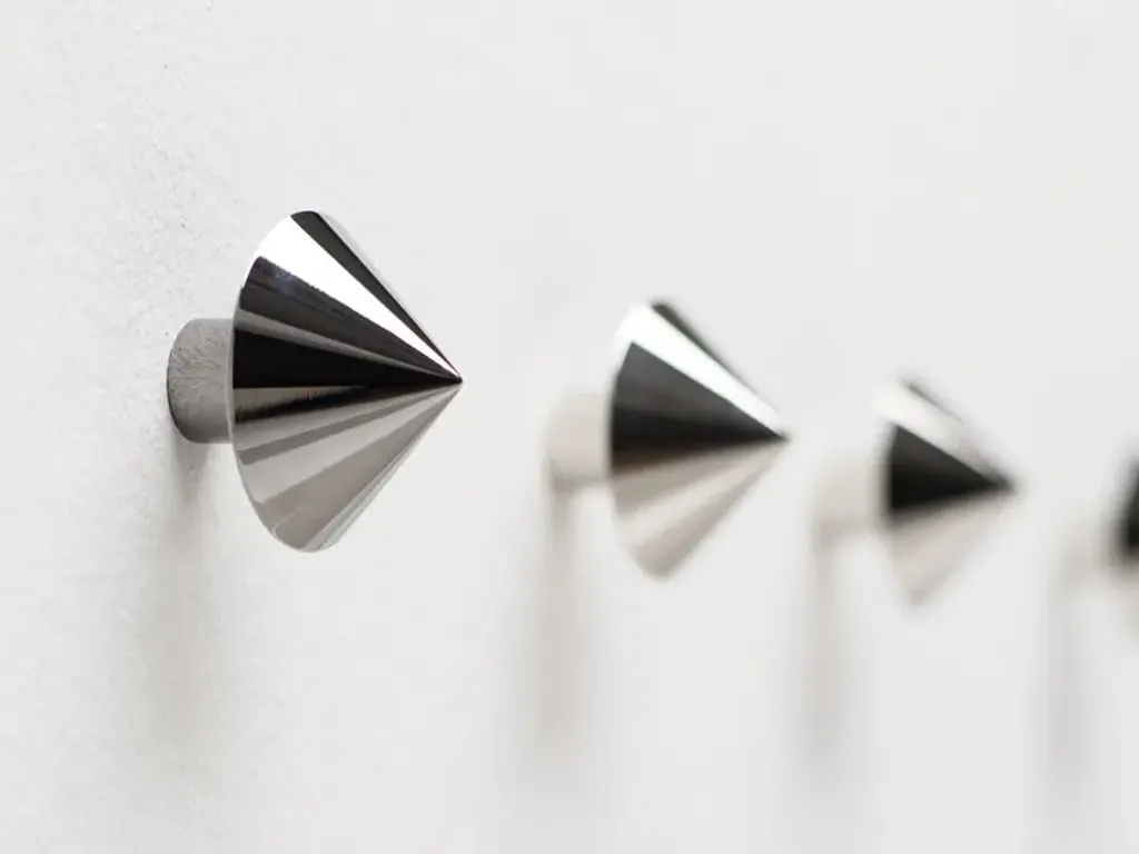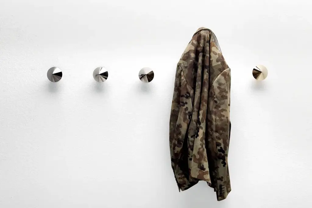 Borchia the clothes-hanger hook designed by Lapo Ciatti and is a tribute to the world of punk style. Its shape is a clear reference to the studs applied on garments and, like the movement to which it is inspired, wants to be a strong and unconventional object, simply out of the box. Presented together with the Mammamia Punk chair in 2013 - the year when all over the world paid a tribute to the punk philosophy, thanks to the prestigious show Metropolitan in New York - Borchia is made of cast metal and is available in chrome polished, 24 k gold or black nickel finishes.Extremely decorative, and easy to position, Borchia is suitable for any environment, residential or professional, both as a complement to the existing furnishing and as a real coat-rack. Perfect in the open spaces of contemporary homes, it easily becomes a solid towel-rack in the bathroom or an element of high aesthetic value in the living room, in the bedroom or wherever you want to furnish with a touch of aggressiveness and irony.