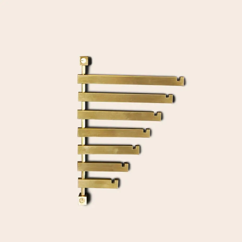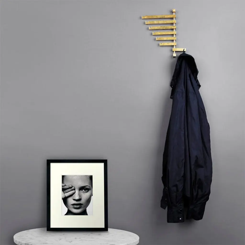 Brass Seven Coat Rack by OxDenmarqDimensions: D 19 x W 18 x H 25.5 cmMaterials: BrassOX DENMARQ is a Danish design brand aspiring to make beautiful handmade furniture, accessories and lighting in natural high-quality materials in fair prices. " When we set out back in 2003, we were primarily working with vegetable-tanned saddle leather thus the name OX was a tribute to our unique leather and the animal providing it.The other half of our name, DENMARQ, is chosen to emphasize that we are a Danish design brand based on the Danish design tradition and that most of our furniture is produced in Denmark. However, DENMARQ not only refers to our home country, but also to the co-founder and designer - DENnis MARQuart.Before finishing his design studies at the Copenhagen Design University, Dennis Marquart did a Blacksmith education. This background is extremely useful when developing and designing products."OX DENMARQ handmade products will only get more beautiful as time passes and natural patina sets in.Many OX products are shaped around marble or vegetable-tanned saddle leather. Stone and leather are materials that will, and should, get marks over time. But they will also age with a very special beauty. When you learn to appreciate the beauty of maturity and of time passing, you have learned to appreciate patina the way it should be appreciated.