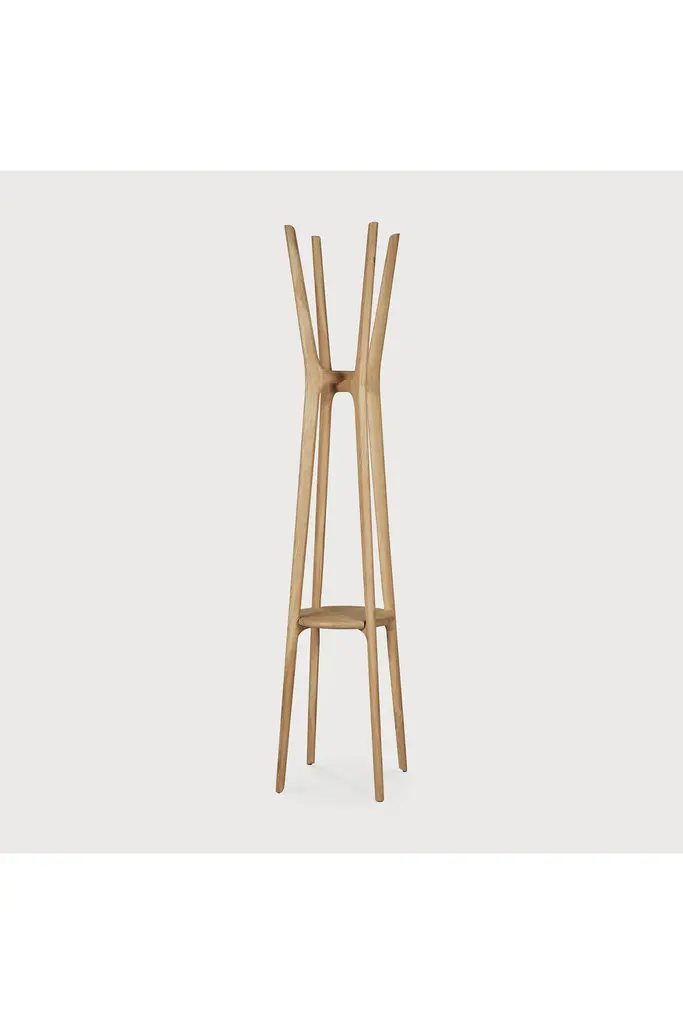 The PI collection honors nature's design by keeping the strength, curves and lines, as nature intended. Interesting shapes are discovered in this sleek and stylish, polished imperfect, finish. Each PI item is finished by hand to ensure that the individual character of the wood is respected. The PI coat stand stylishly stores coats, hats and other personal effects with ease.