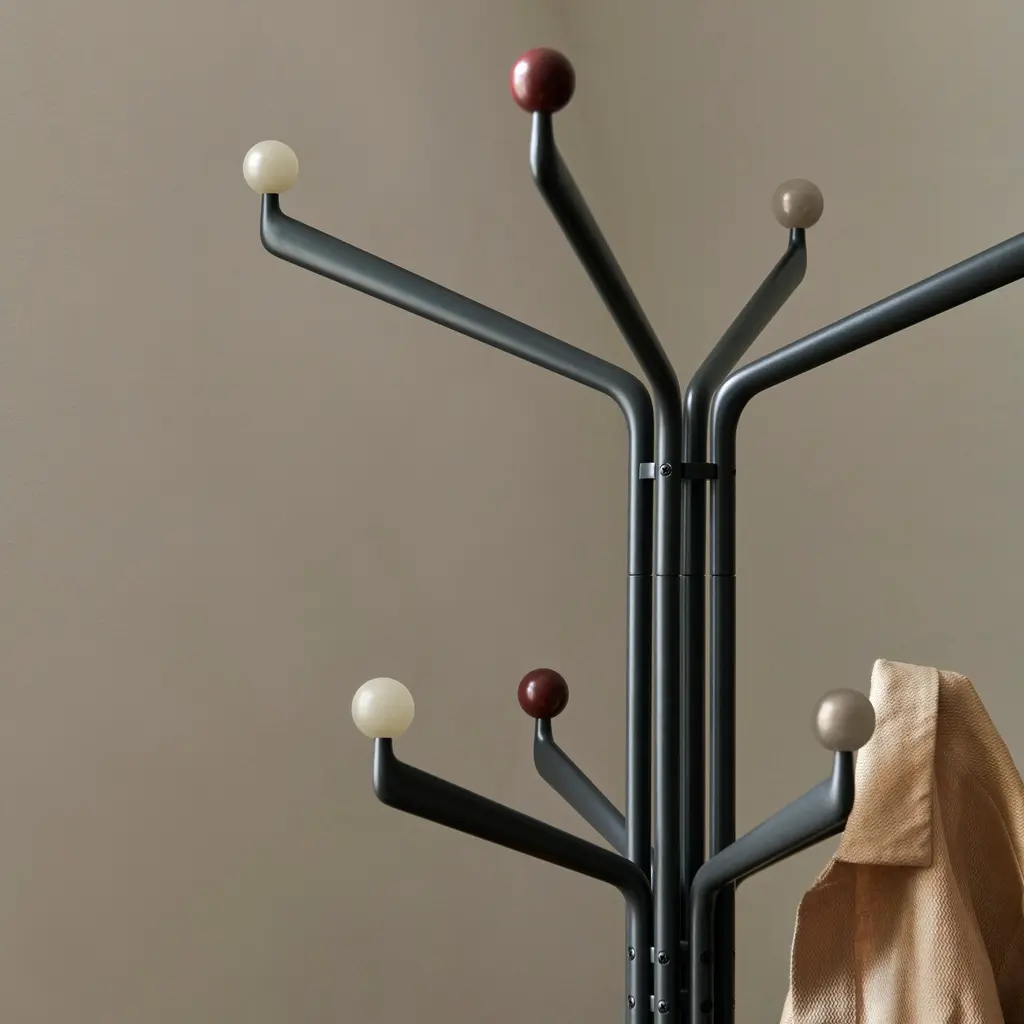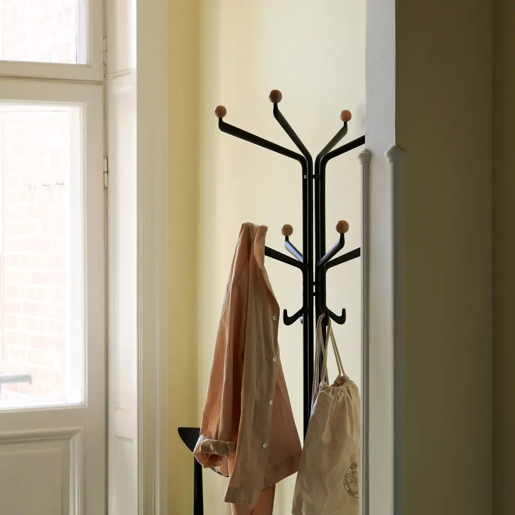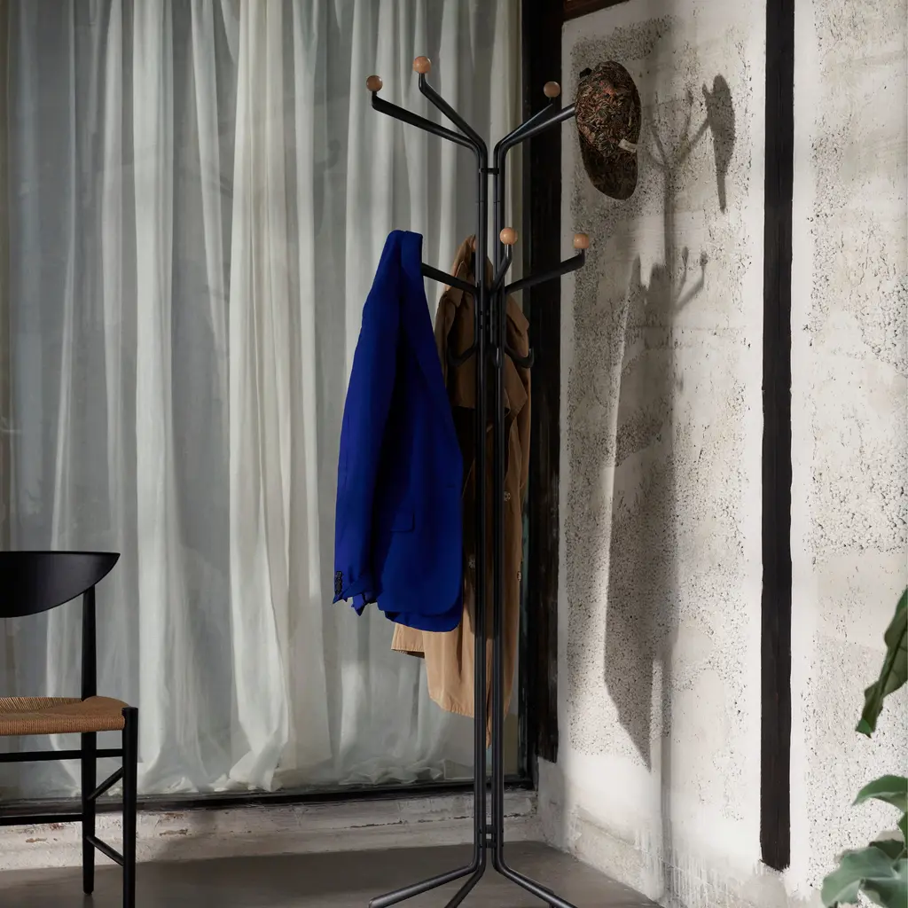 Get in the swing with &Tradition's highly adaptable Capture Coat Stand that features sleek swiveling hooks topped with solid-oak knobs. As a handy place for towels in the bathroom or in the entry for coats and bags, it's made from sturdy cast aluminum that is milled and then powder coated. Turned from solid wood, the knobs come in natural or multicolor lacquered finish. Designed to be used alone or in a set, why not consider doubling them up for a real tango