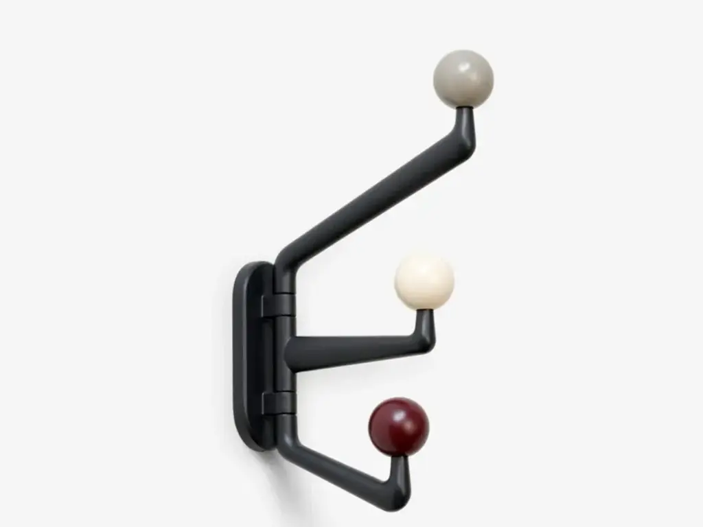 Designed to be used alone or in a set, the highly adaptable Capture coat hooks provide a range of solutions around the home. Also featuring swinging hooks, this piece can be used in the bathroom or kitchen as a handy place to hang towels, or in the entrance hall for coats and bags.Production processThe metal parts are cast from aluminum, after which they are milled and then powder coated. The wooden knobs are turned from solid wood.EnvironmentIndoorMaterialsPowder coated aluminium and lacquered oak.ColoursGraphite & Coloured knobs, Graphite & Oak knobsWeight2-2.4kgManufacturerProduced in China by Nine United Limited