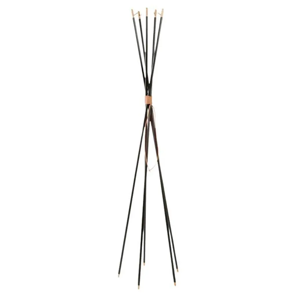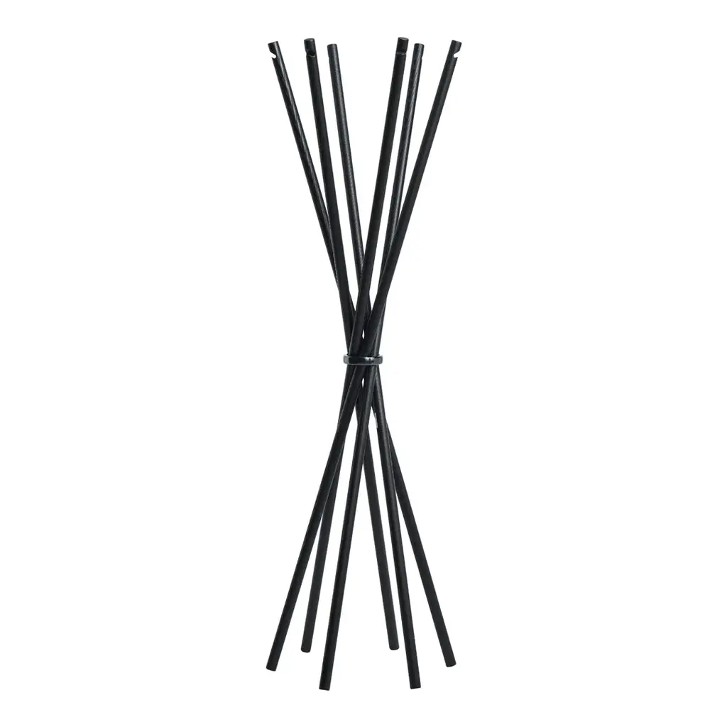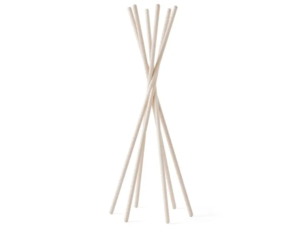 A minimalist and expressive coat rack build by six poles held by a solid aluminum ring. Coat can be set up with the notch facing inwards or outwards - as you prefer. Coat is easy to unfold and fold back again and to place where you need it.