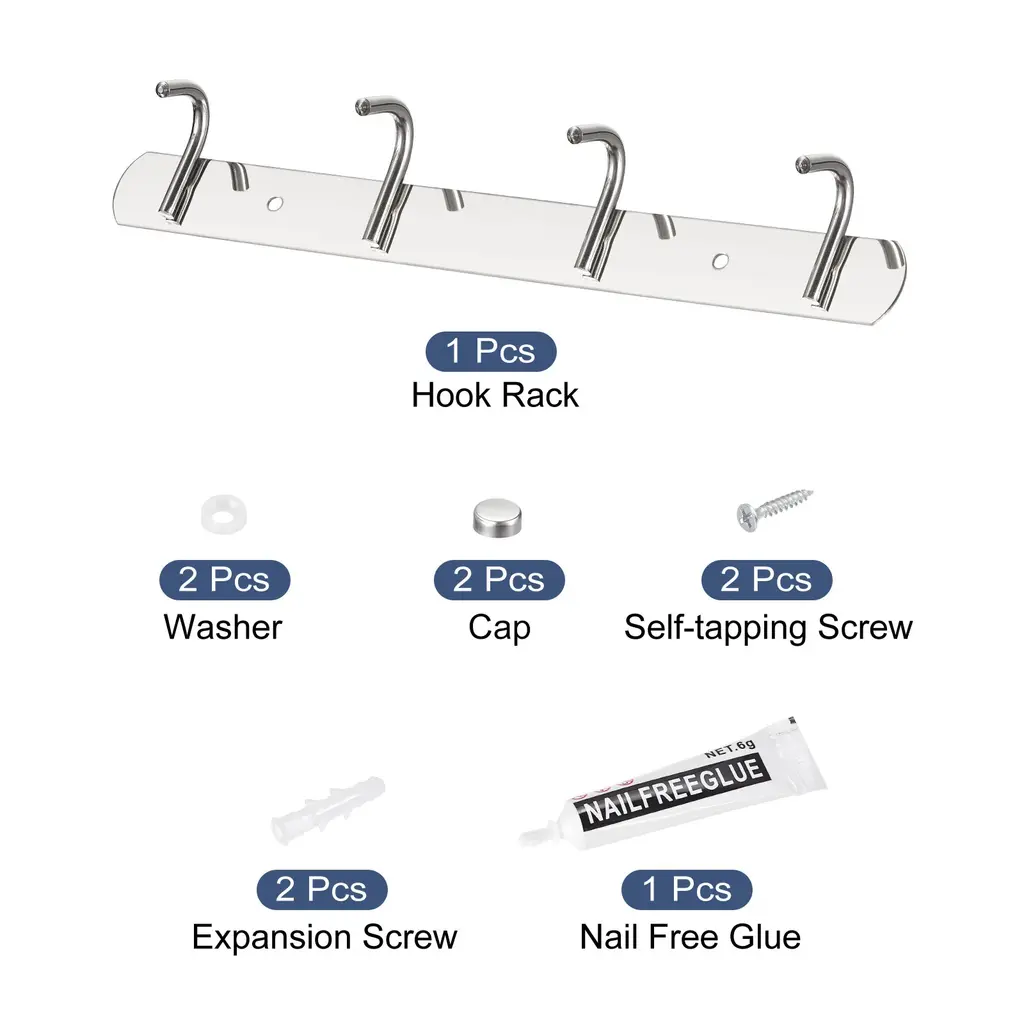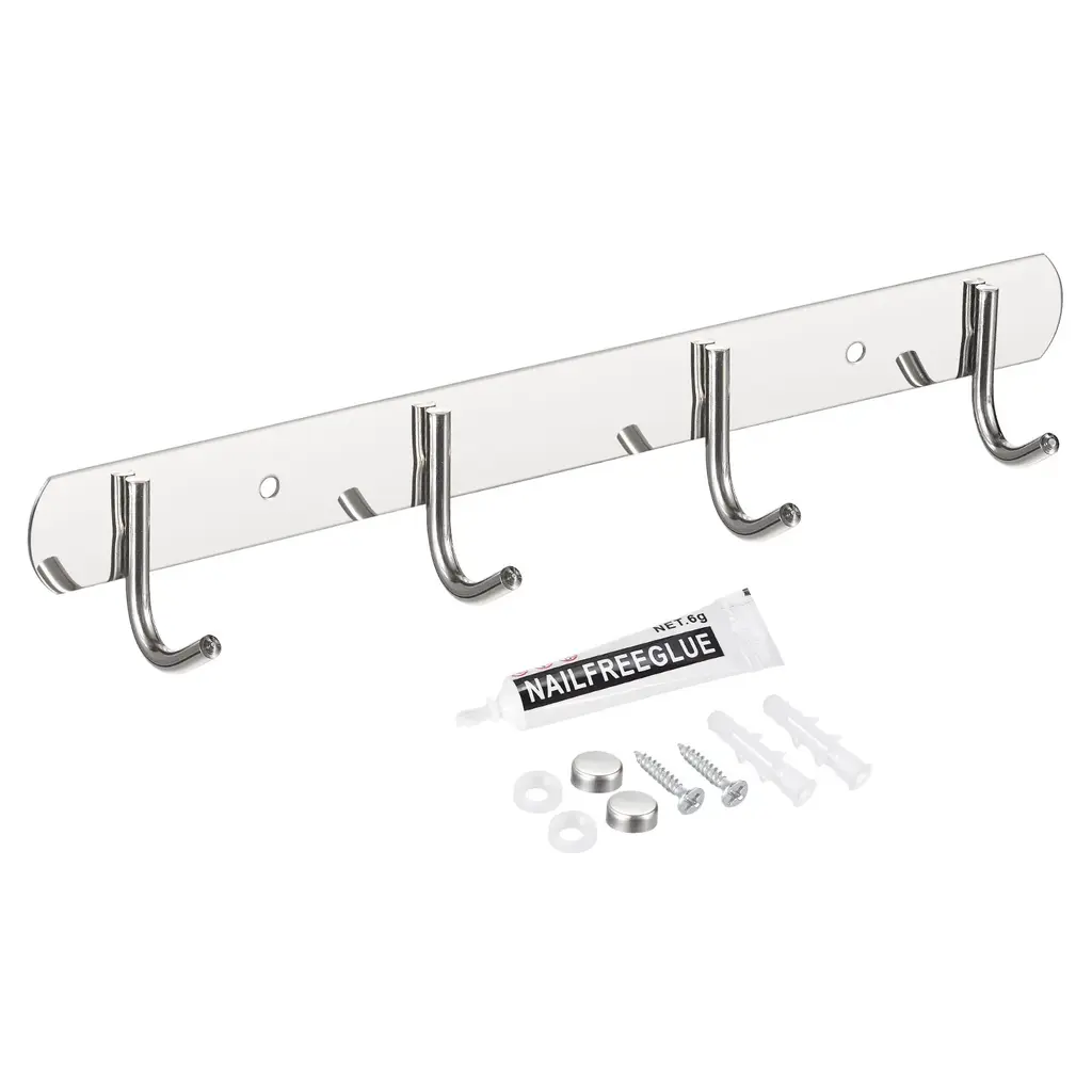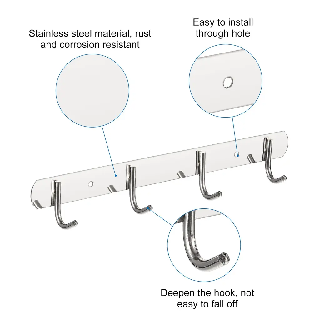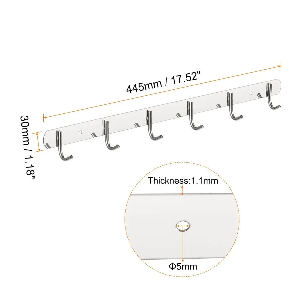 Coat Hook Rack, 201 Stainless Steel Wall Mounted Hook Rail Wall Hanger - 6 Hooks
