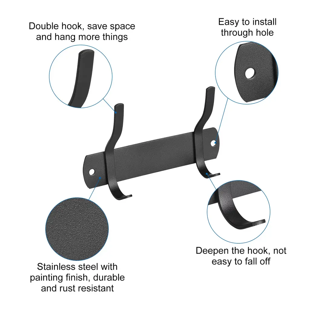 Coat Hook Rack, Stainless Steel Wall Mounted Hook Rail Wall Hangers - 2 Hooks
