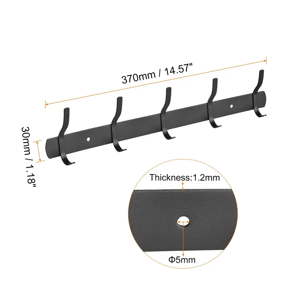Coat Hook Rack, Stainless Steel Wall Mounted Hook Wall Hangers 2Pcs - 5 Hooks