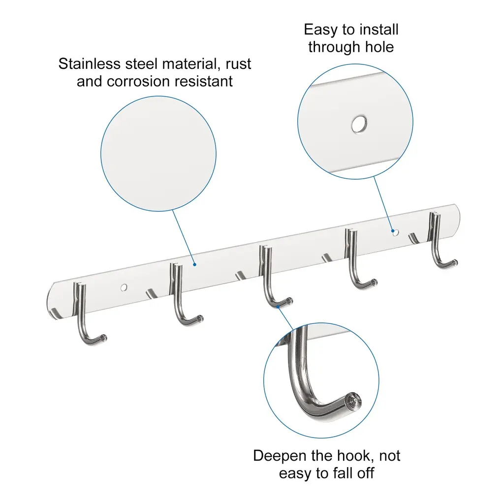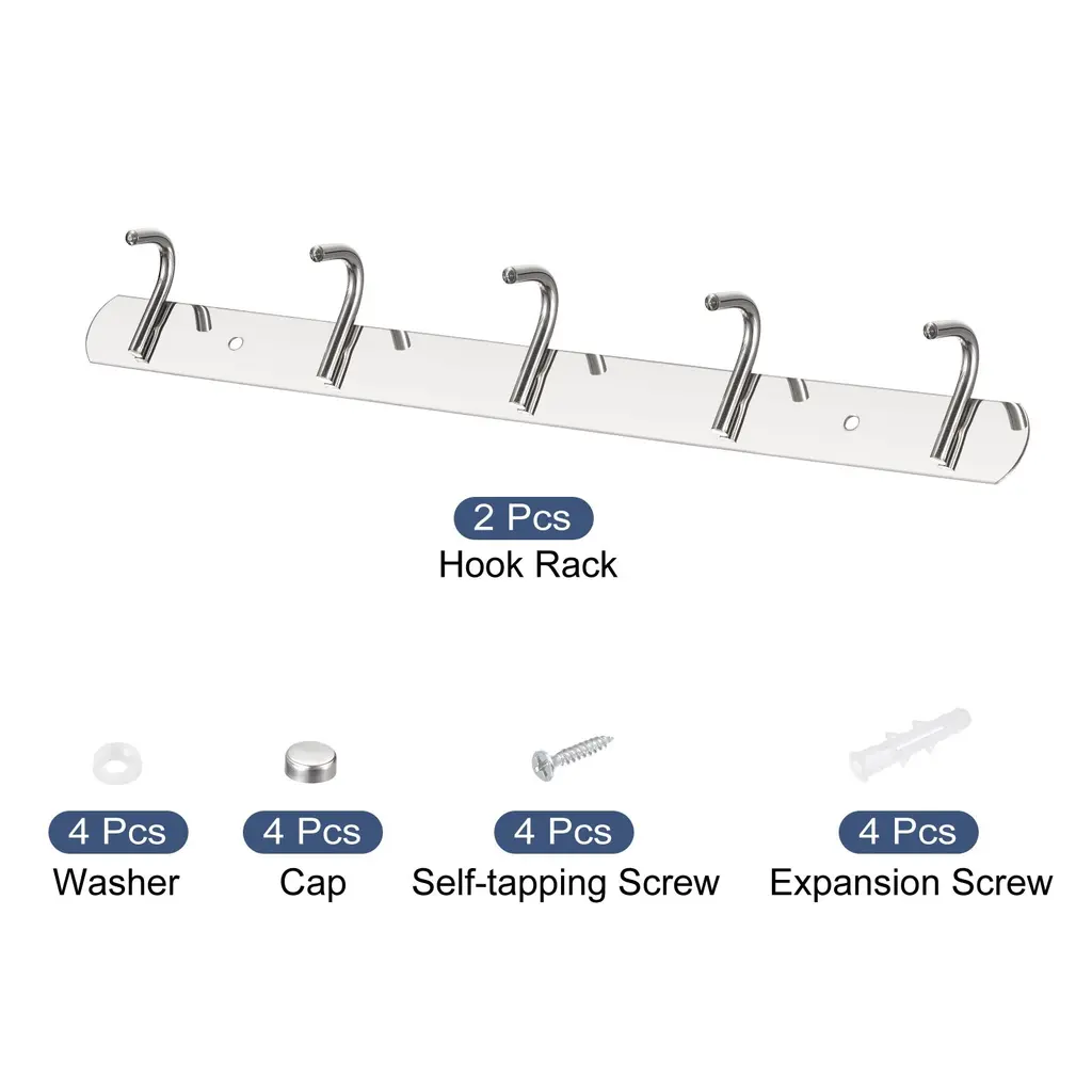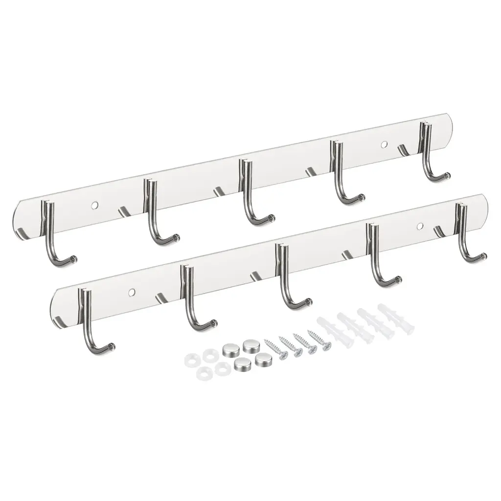 Coat Hook Rack, Stainless Steel Wall Mounted With 5 Hooks Wall Hangers - 2Pcs