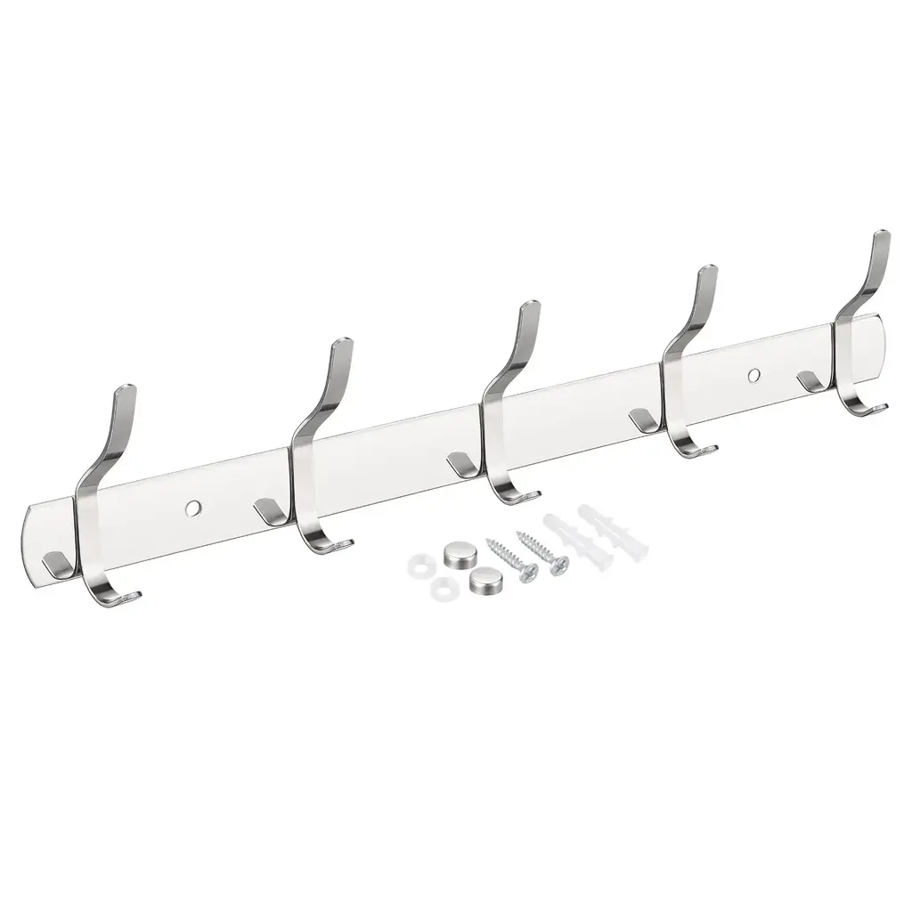 Coat Hook Rack Wall Mounted With 5 Hooks Hook Rail Wall Hangers Silver - 1Pcs