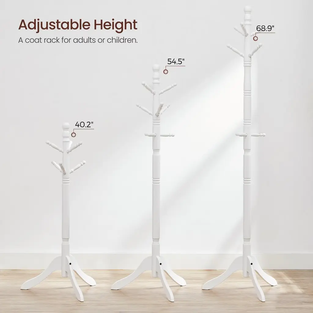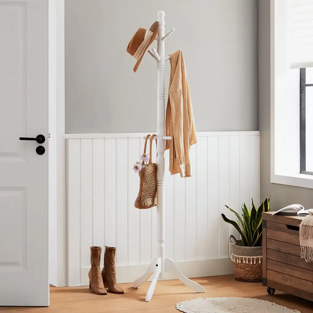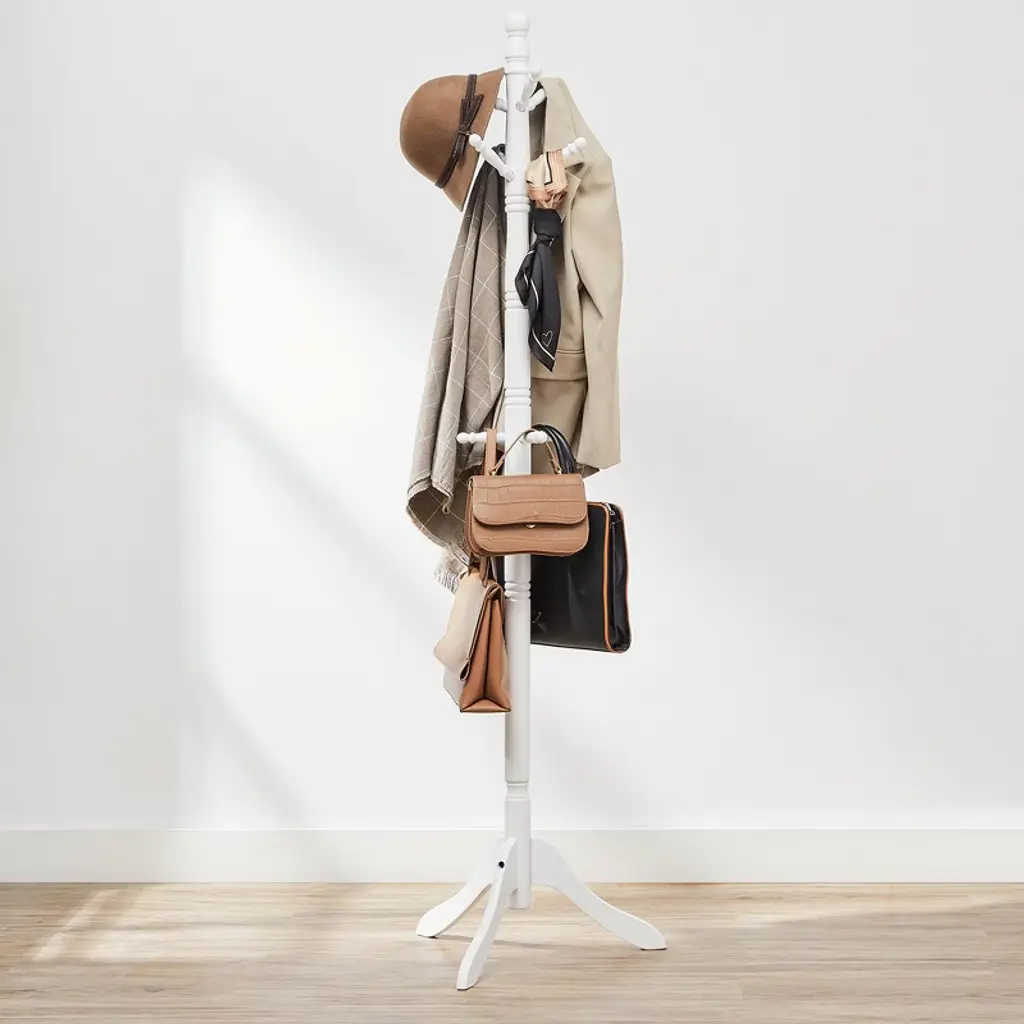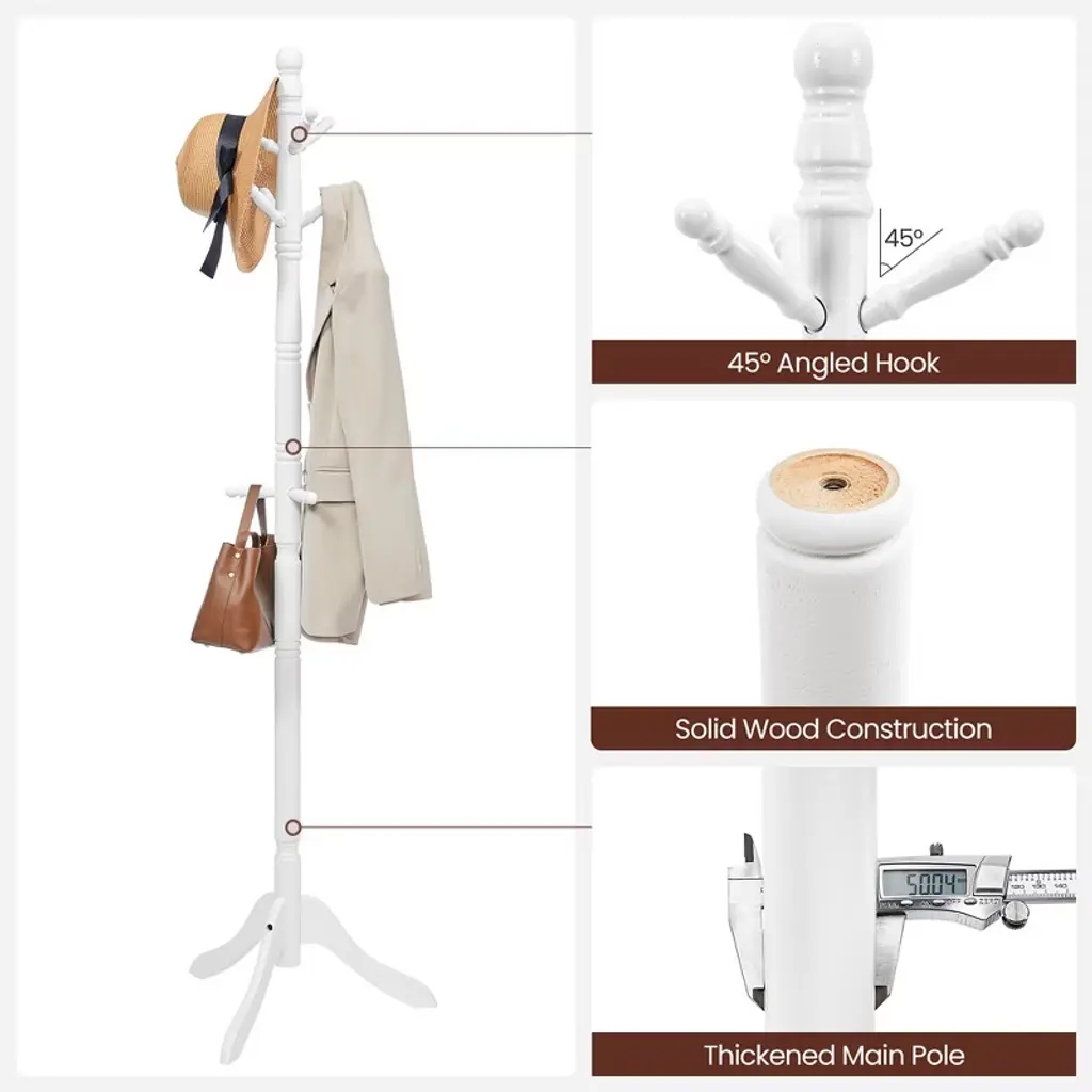 Coat Rack, Solid Wood Coat Stand White