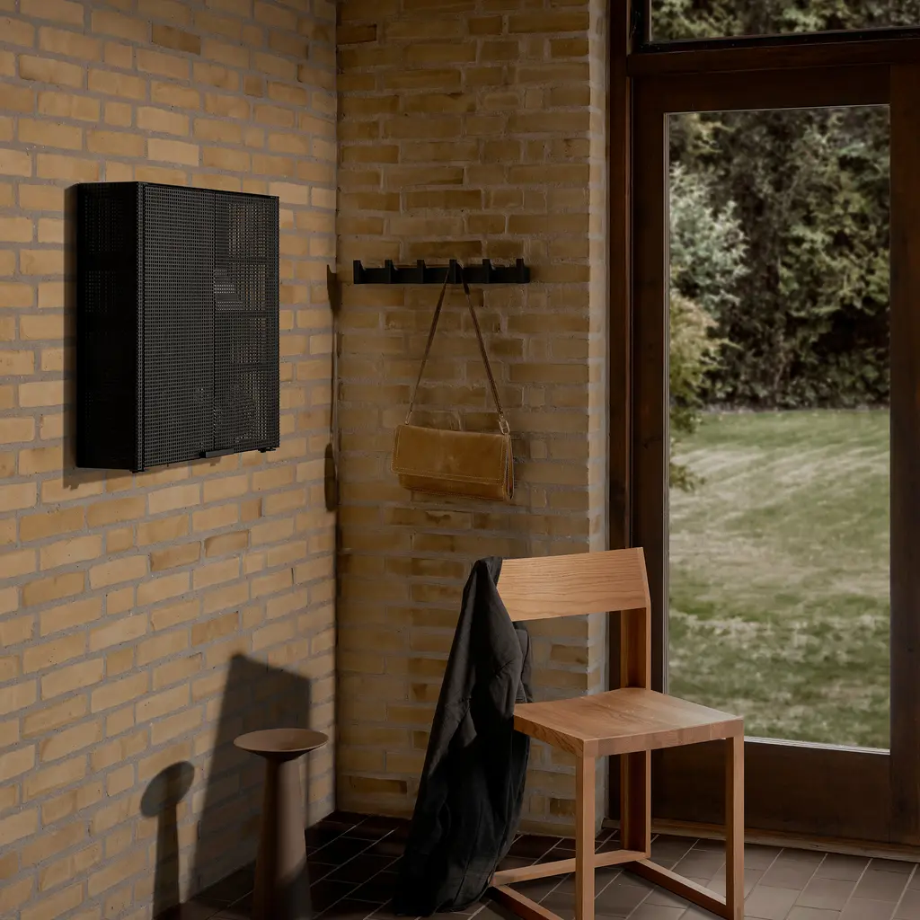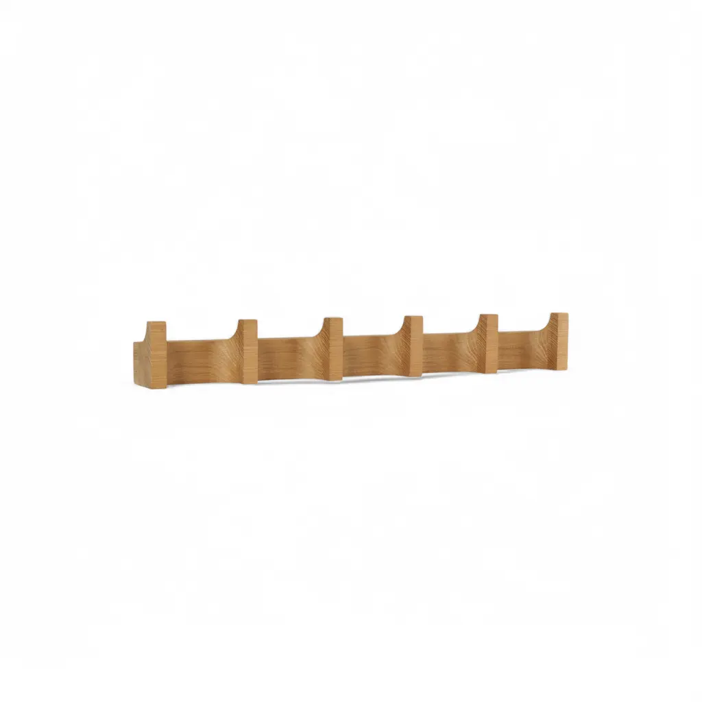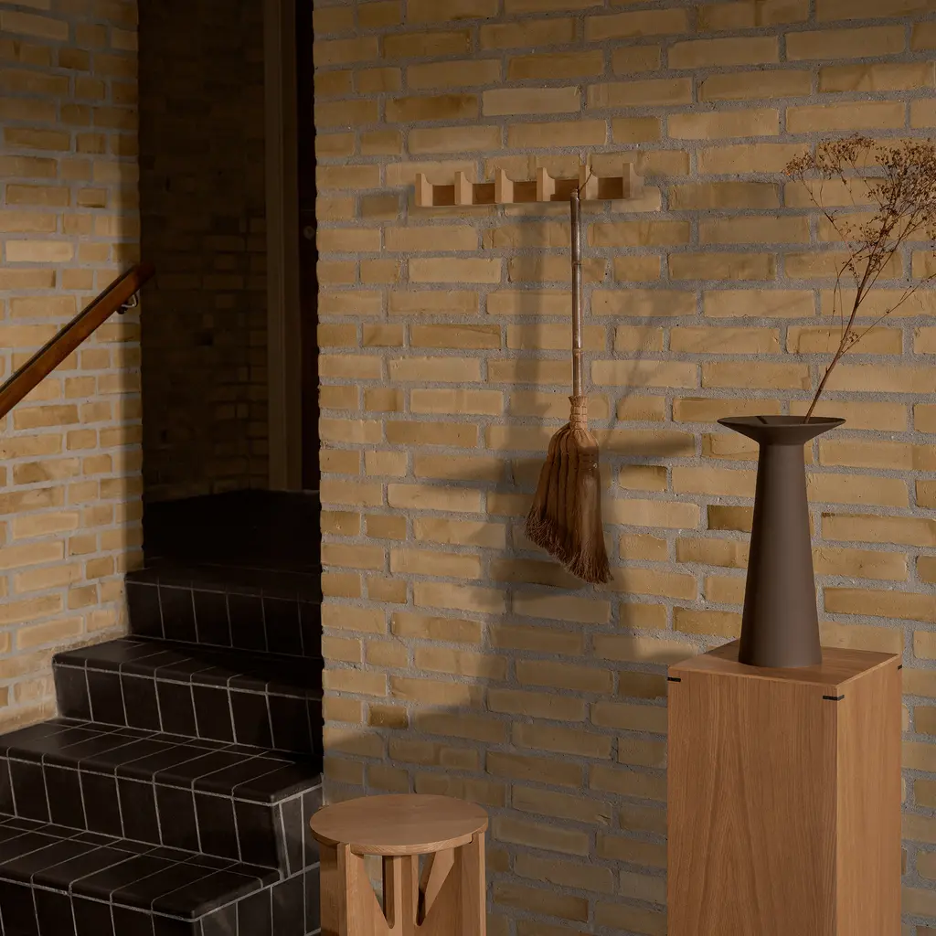 Every entrance area needs a reliable coat hanger that can hold anything from jackets and hats to scarves or bags. The Kristina Dam Studio Column Coat Rack offers all of that but also enhances your home décor with its beautifully sculpted design. Crafted from solid oak, the coat rack features six hooks that remind of the carvings of classic marble columns. The hooks offer generous room for a variety of outerwear and accessories you want to organize, store and keep close at hand. Manufactured from solid wood, the Column Coat Rack comes in light oiled, warm oiled, and black lacquered finishes. Easy to install, it can be used individually, in a set of multiple coat hangers, or in a modular composition to create a longer coat rack.