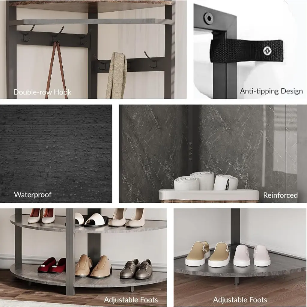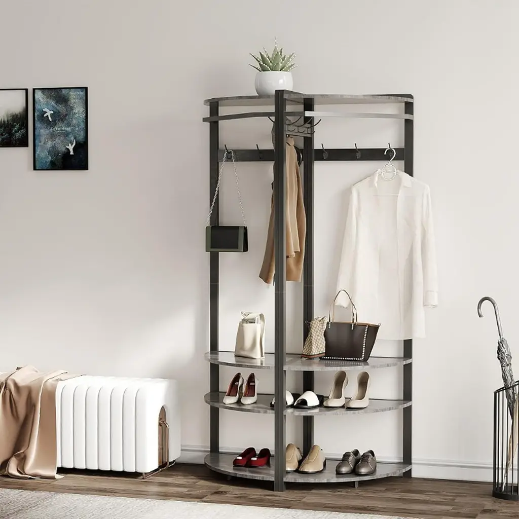 Maximize your unused corners with this ingenious 90° storage solution that combines a full-length coat rack, shoe storage, and display shelf in one sleek unit. Perfect for entryways, bedrooms, or dressing areas, this versatile organizer keeps your daily essentials within reach while maintaining a clutter-free space.