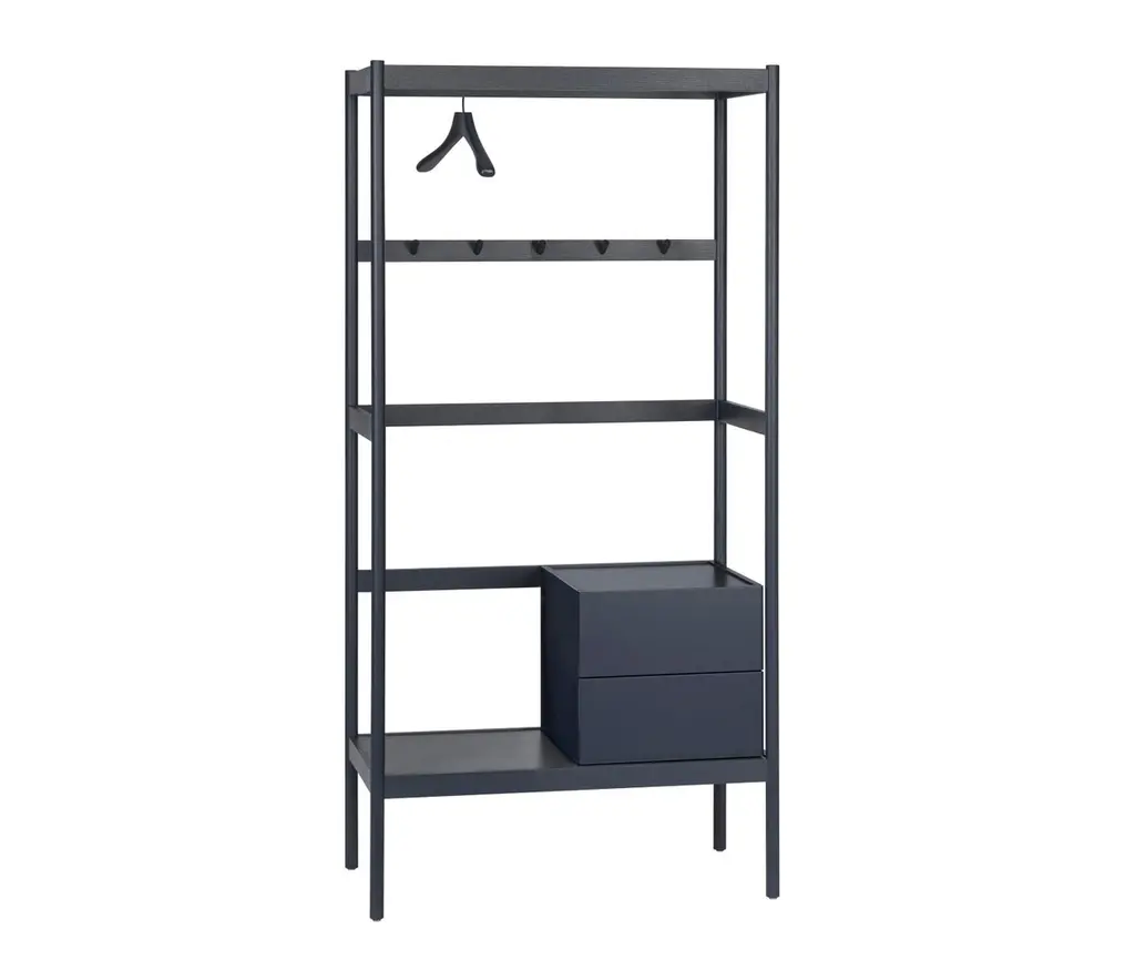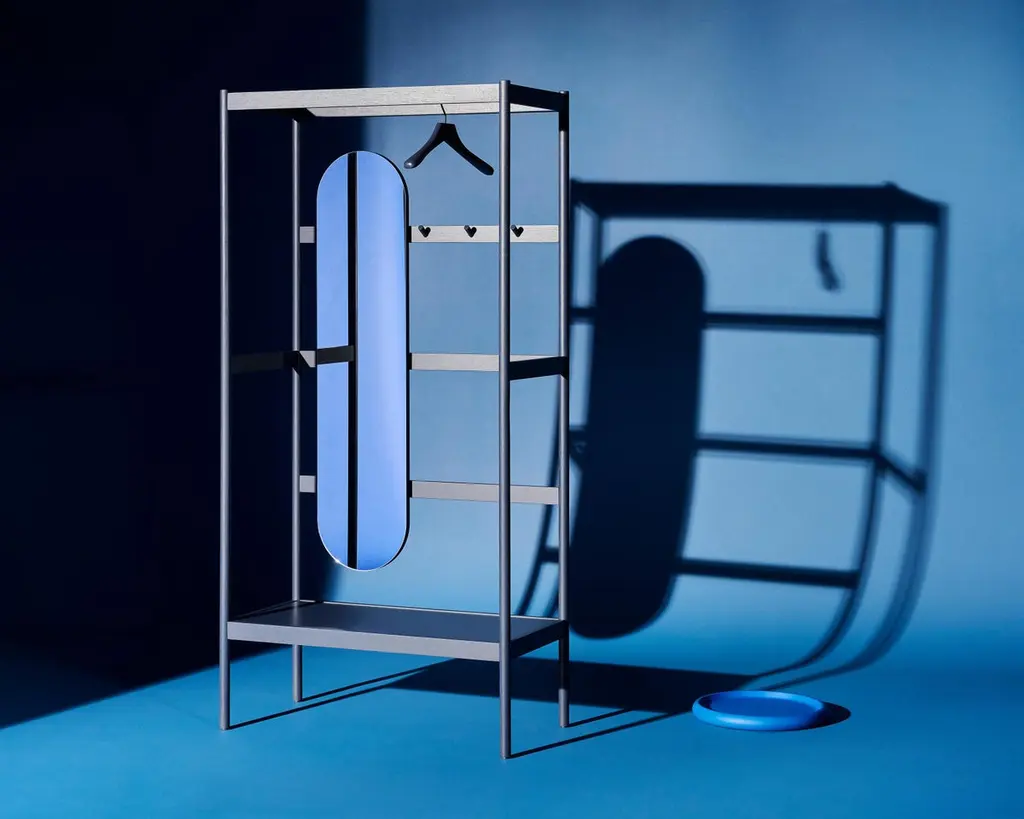 Coat stand with mirrorsolid wood with open-pore lacquer finishHolds up to 15 kg when evenly distributed.Coat storage? Wardrobe? CHESTER combines the open, airy design of shelf-type coat storage with the basic form and function of a cupboard. The result? A delicate-looking yet practical designer item that can be flexibly customised with numerous details and accessories. Made of solid wood, CHESTER features a hook rail, hanging rail and shelving. It can be fitted with a range of optional extras: an oval mirror, a drawer with shelf-top and a slim cabinet with door.To emphasise the natural material, CHESTER’s frame features an open-pored, painted finish. The accessories are fully lacquered.Whether as compact coat storage at home or for stylish storage in hotels, offices or apartments, CHESTER works in all kinds of spaces.