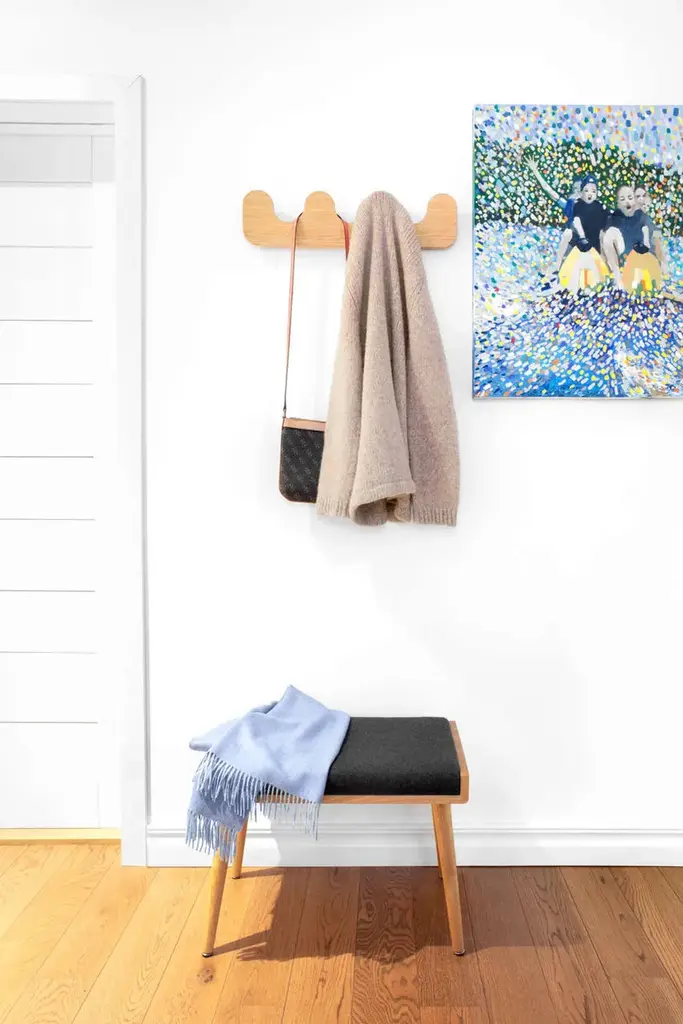 You know the relaxing feeling you feel drifting along with the waves on a hot summer day? With the same ease, you can now through your jacket, scarf or coat on the Drift peg.Similar in form to cool waves in motion, it is beautiful and simple clothes rack that will look good in any hallway.Assembled easily with two screws.Available in oak veneer and white or pale grey HPL veneer.