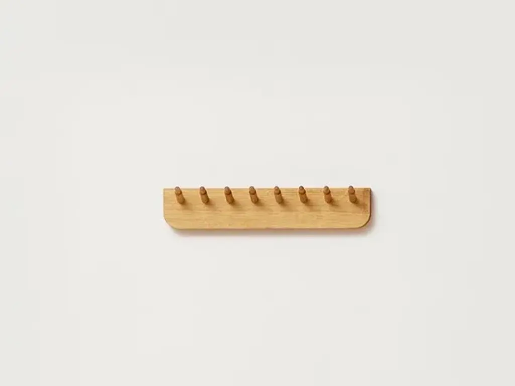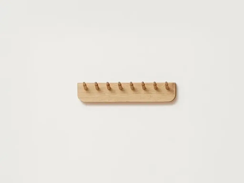 Echo is a flexible multi-purpose rack with a simple functional design for practical use throughout your living space, may it be in the bathroom, kitchen or hallway. The beauty of the framework and the formation of the pegs creates a structured design constituted by recognizable repetitions. The pegs are carefully detailed and have a curved form with a robust foundation. The sturdy and strong backrest provides durability and means that the coat rack can take considerable weight. Made of local certified European solid oak, and available in two sizes.“We wanted to make a coat rack where repetition becomes an essential element of the expression. By repeating the same hook many times and putting them in a row, a graphically beautiful rhythm is created. The shape of the hooks is pointed softly to be able to better grip the jackets that are hung.” Herman Studio