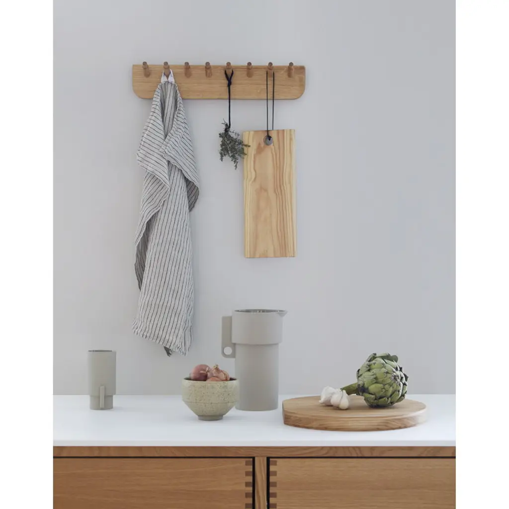Form & Refine’s Echo coat rack is a versatile and, above all, beautiful addition to an entrance hall, kitchen or dressing room. Made of solid oak, the coat rack is decorated with gorgeous wood grain patterns that make each piece unique. Designed by Herman Studio, Echo’s name refers to the repetition of its hooks: “We wanted to make a coat rack where repetition becomes an essential element of the expression,” says Herman Studio. “By repeating the same hook many times and putting them in a row, a graphically beautiful rhythm is created. The shape of the hooks is pointed softly to be able to better grip the jackets that are hung.”