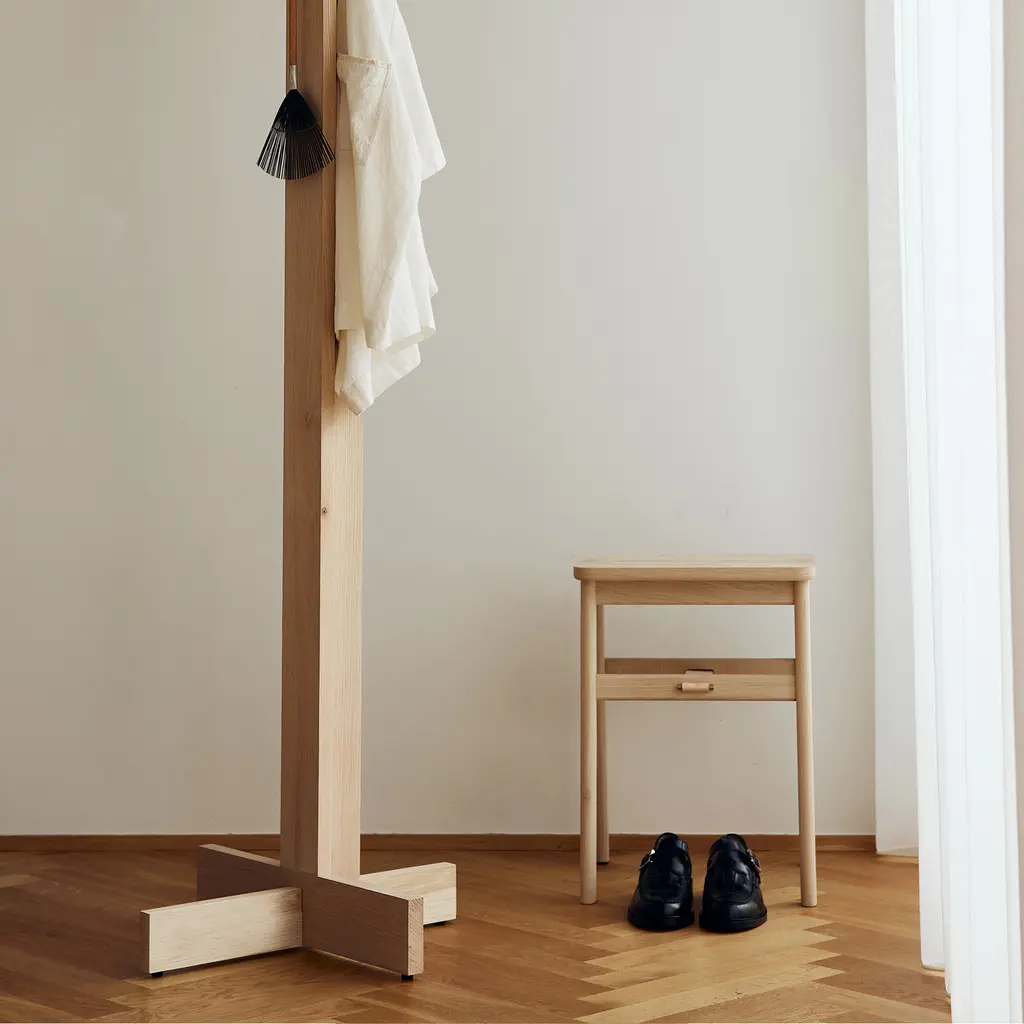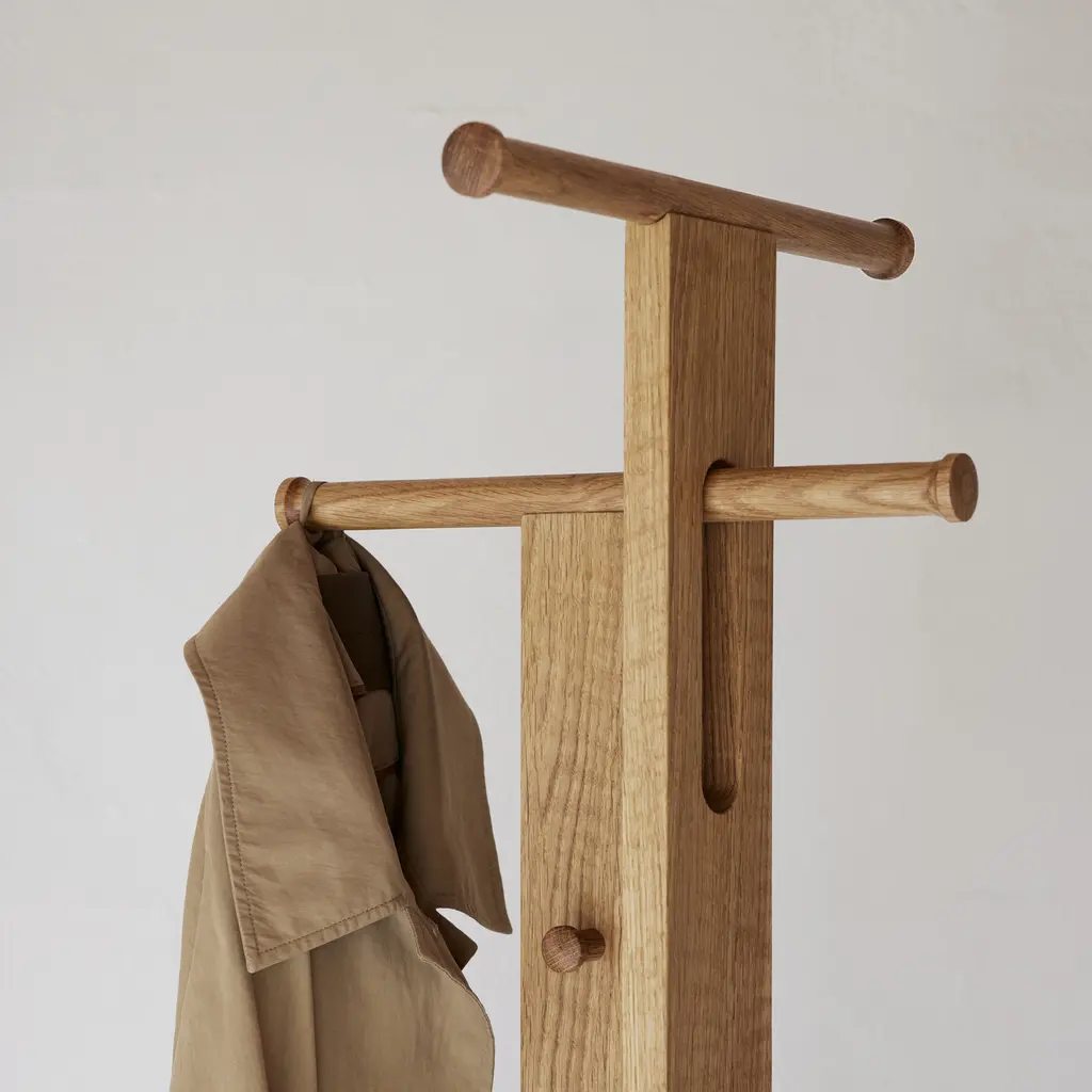 A space saving coat stand, Foyer is characterized by its slender and intelligent design. It boasts two main vertical pillars and finely crafted, slender branches that provide room for coats, bags, scarves, and other accessories. Apart from serving a functional purpose, the tubular branches add aesthetic appeal and a touch of sophistication to the design. Practical and flexible, the structure stands independently, eliminating the need for additional support. Plus, Foyer is remarkably easy to fold, making it ideal for space-conscious environments. In addition to its primary hanging spaces, the coat stand is equipped with four extra hooks. Strategically placed, the hooks can be arranged in a custom order along the pillars, enhancing the stand’s utility and allowing for a personalized organization of coats and accessories. The combination of elegant design and practical functionality makes this space saving coat stand a versatile and stylish addition to any modern space.