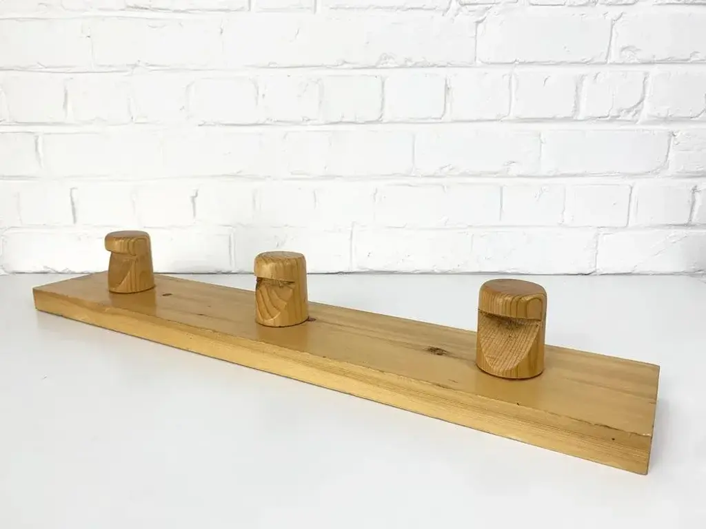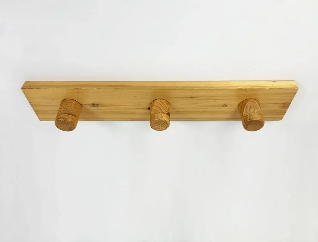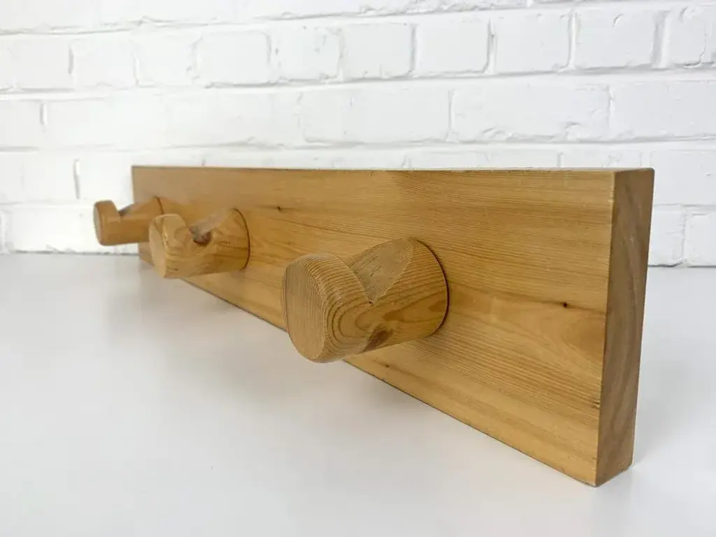 Coat rack with three hangers designed by Charlotte Perriand for Les Arcs, a ski resort in the Alps. The project was one of the largest in Perriand's career. She was then in her 60s, at the peak of her career in 1967 when she was asked to join the project to lead a team of young architects to create a ski resort in the alpine landscape. As a feminist and socialist, Charlotte Perriand wanted to bring her egalitarian attitude to the architecture and interior design of Les Arcs. The apartments were created to be affordable and filled with beautiful and durable objects she designed specifically for each building. Manufactured in France in the 1960s or 1970s. Made of solid pinewood. Origin: An apartment of one of the Les Arcs ski resorts. In good original condition, wear consistent with age and use, preserving a beautiful patina. This piece is attributed to the mentioned designer/maker. It has no attribution mark and no official proof of authenticity, however it is well documented in design history. I take full responsibility for any authenticity issues arising from misattribution