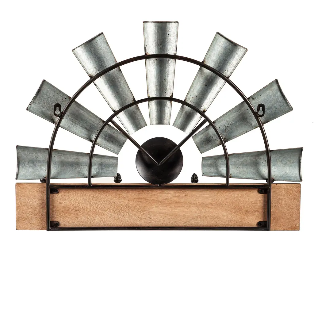 Organize in style with this rustic Galvanized Metal and Wood Windmill Hook Rack. Perfect for an entryway, kitchen and more, the mixed materials design adds farmhouse chic to any space. The four hooks have a sleek black finish and offer a stylish way to hang coats, hats, towels and more. Two keyhole anchors along the back allow for easy wall display and sturdy hanging. Design is meant for indoor use only.