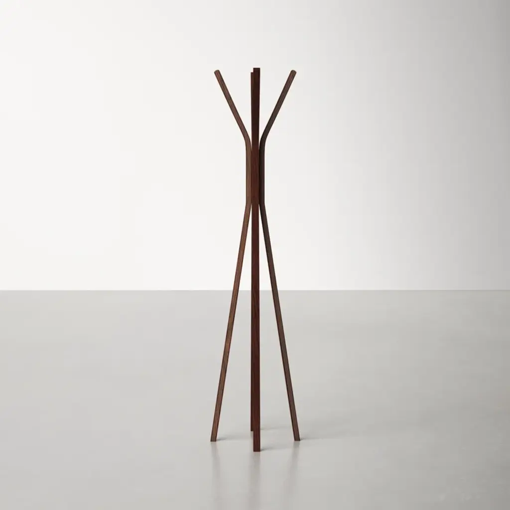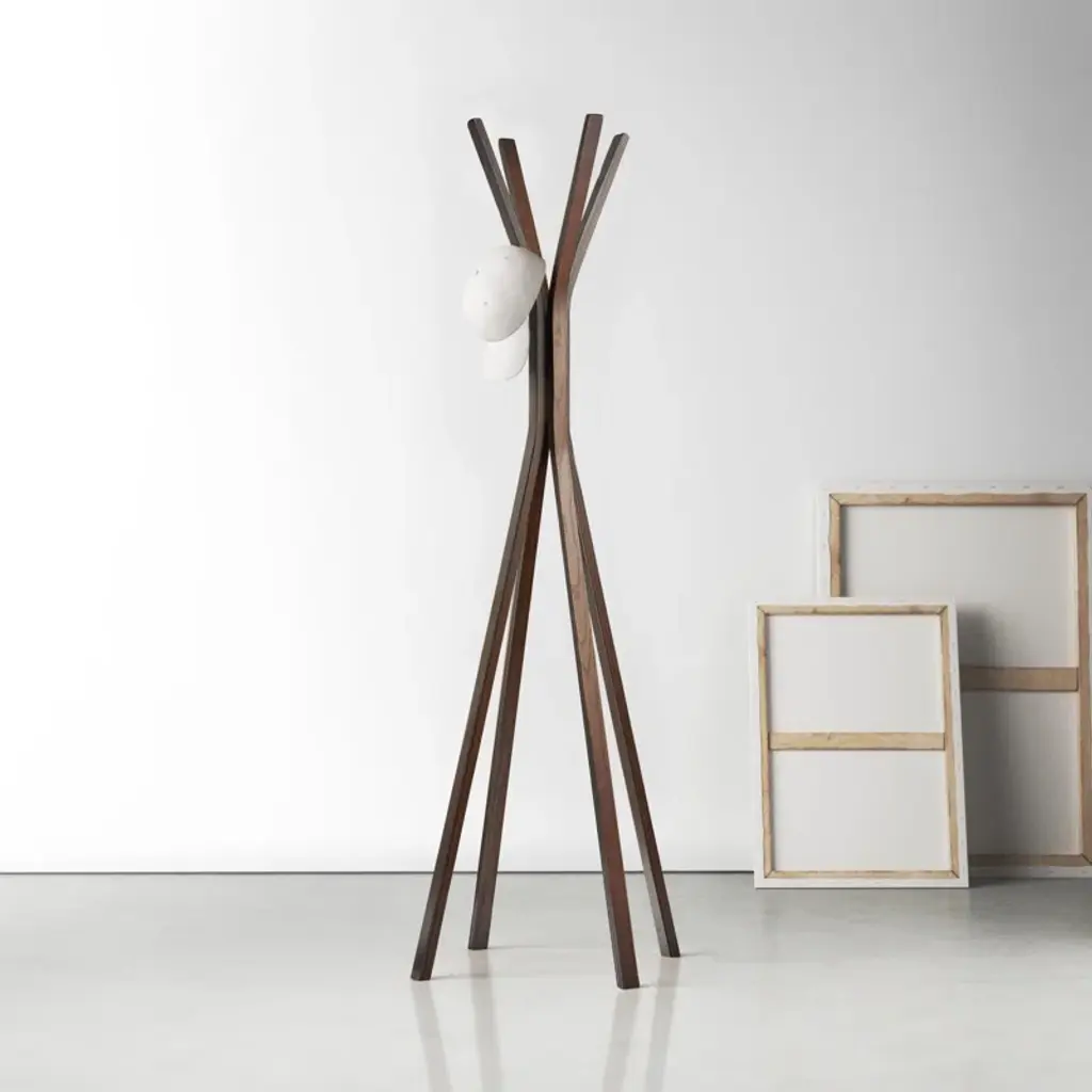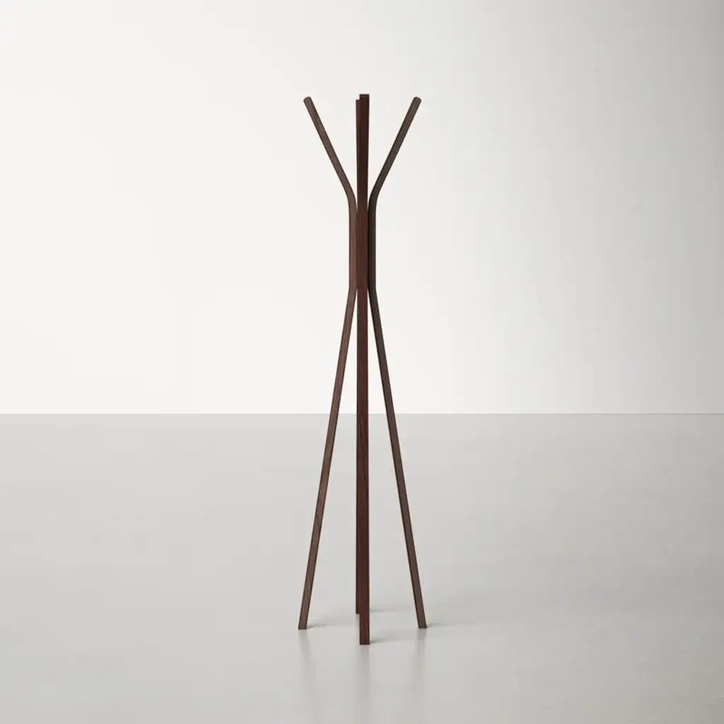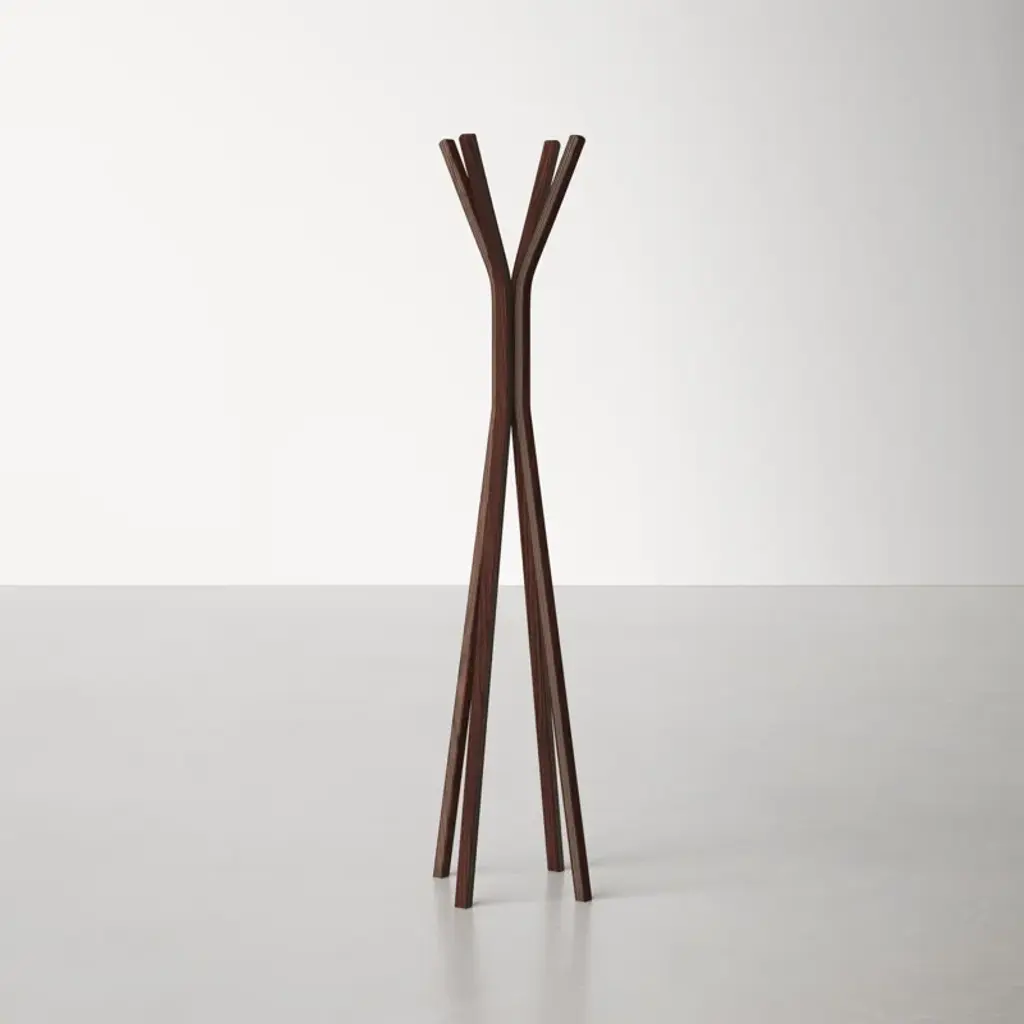 Sculptural storage. This scaled-back coat rack strikes a bold stick figure silhouette, with splayed legs for stability and outstretched arms ready to relieve you of your coat, hat, and bag. It’s crafted with rubberwood and engineered wood that layers an organic element onto its minimal lines.
