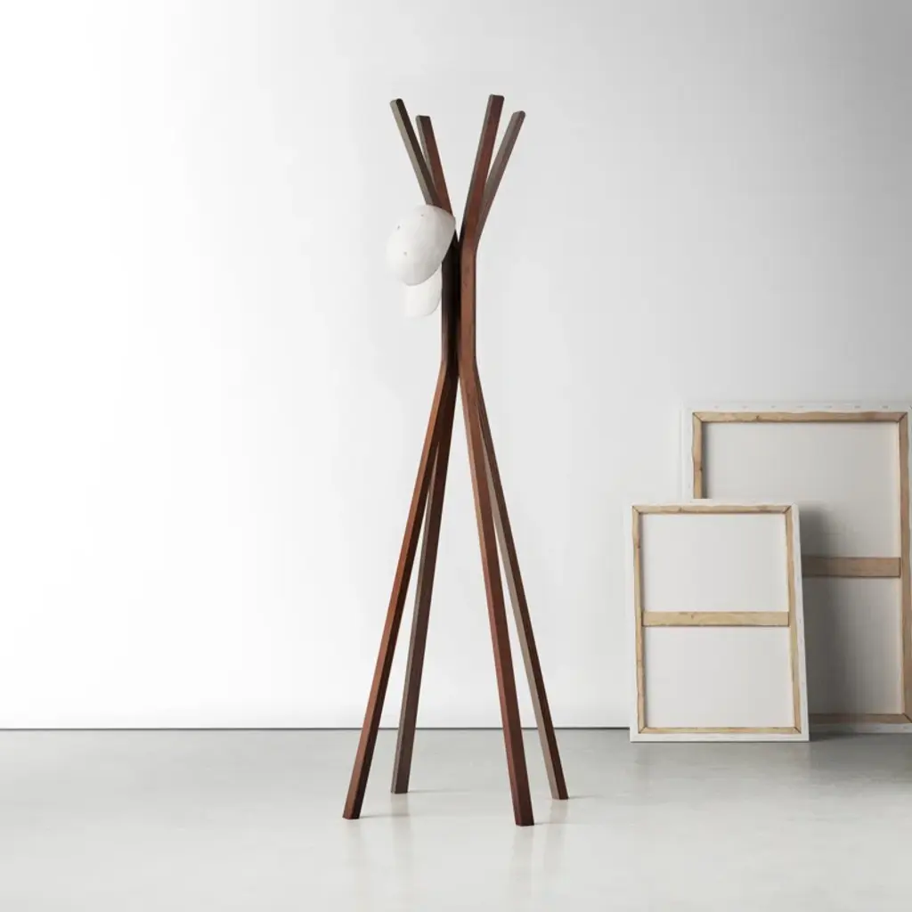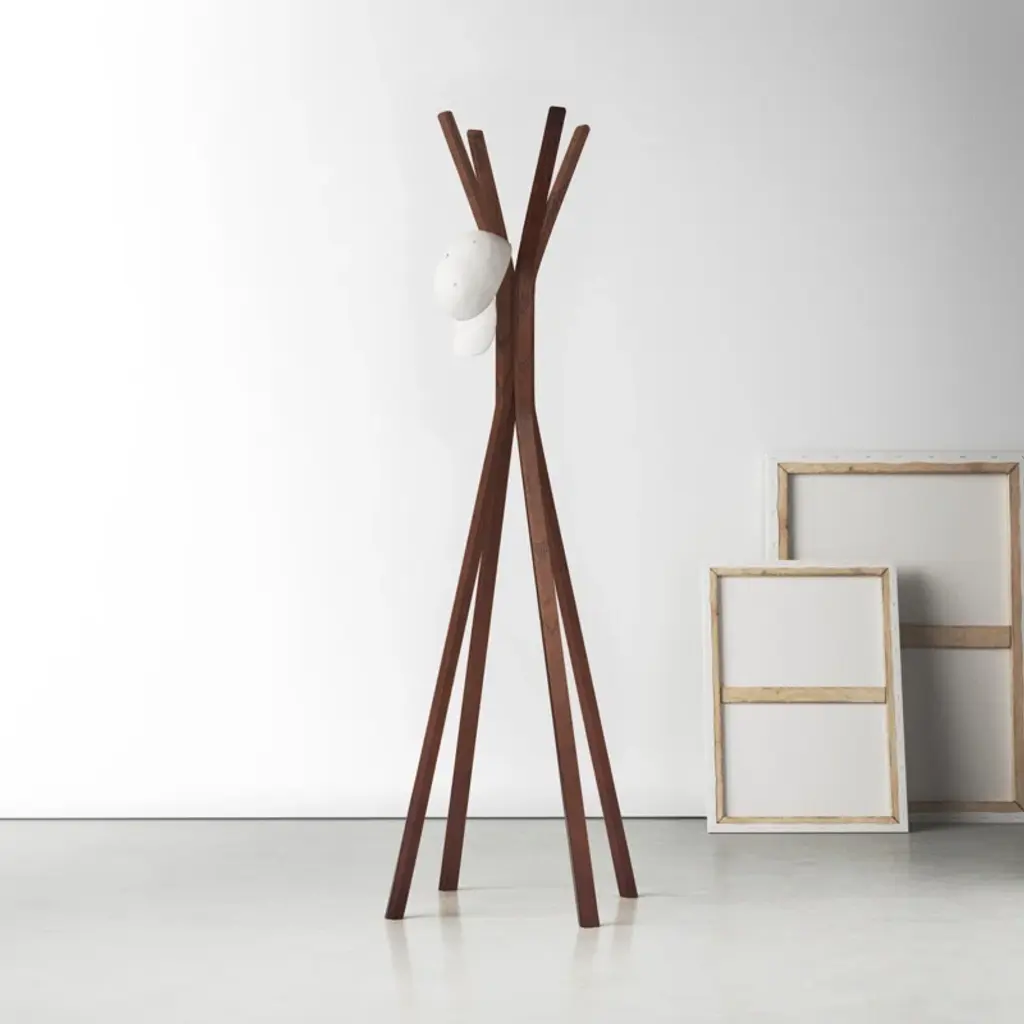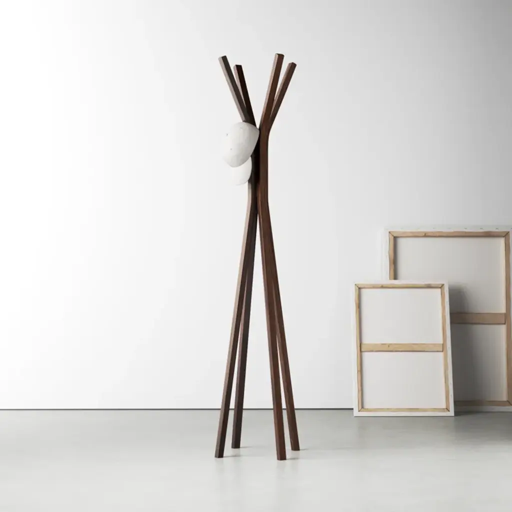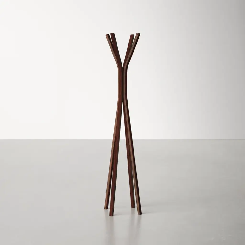 Sculptural storage. This scaled-back coat rack strikes a bold stick figure silhouette, with splayed legs for stability and outstretched arms ready to relieve you of your coat, hat, and bag. It’s crafted with rubberwood and engineered wood that layers an organic element onto its minimal lines.