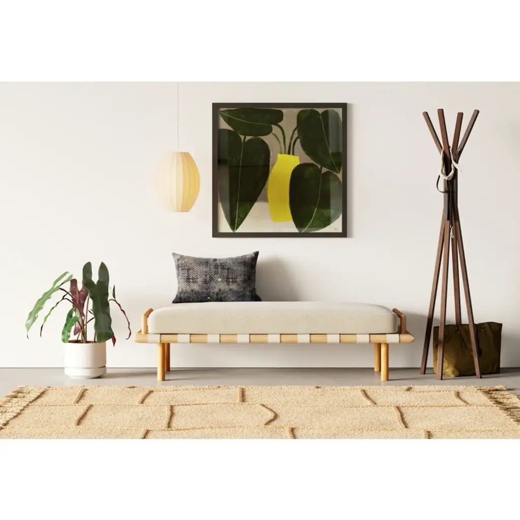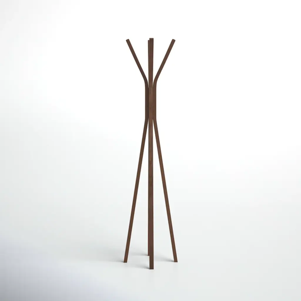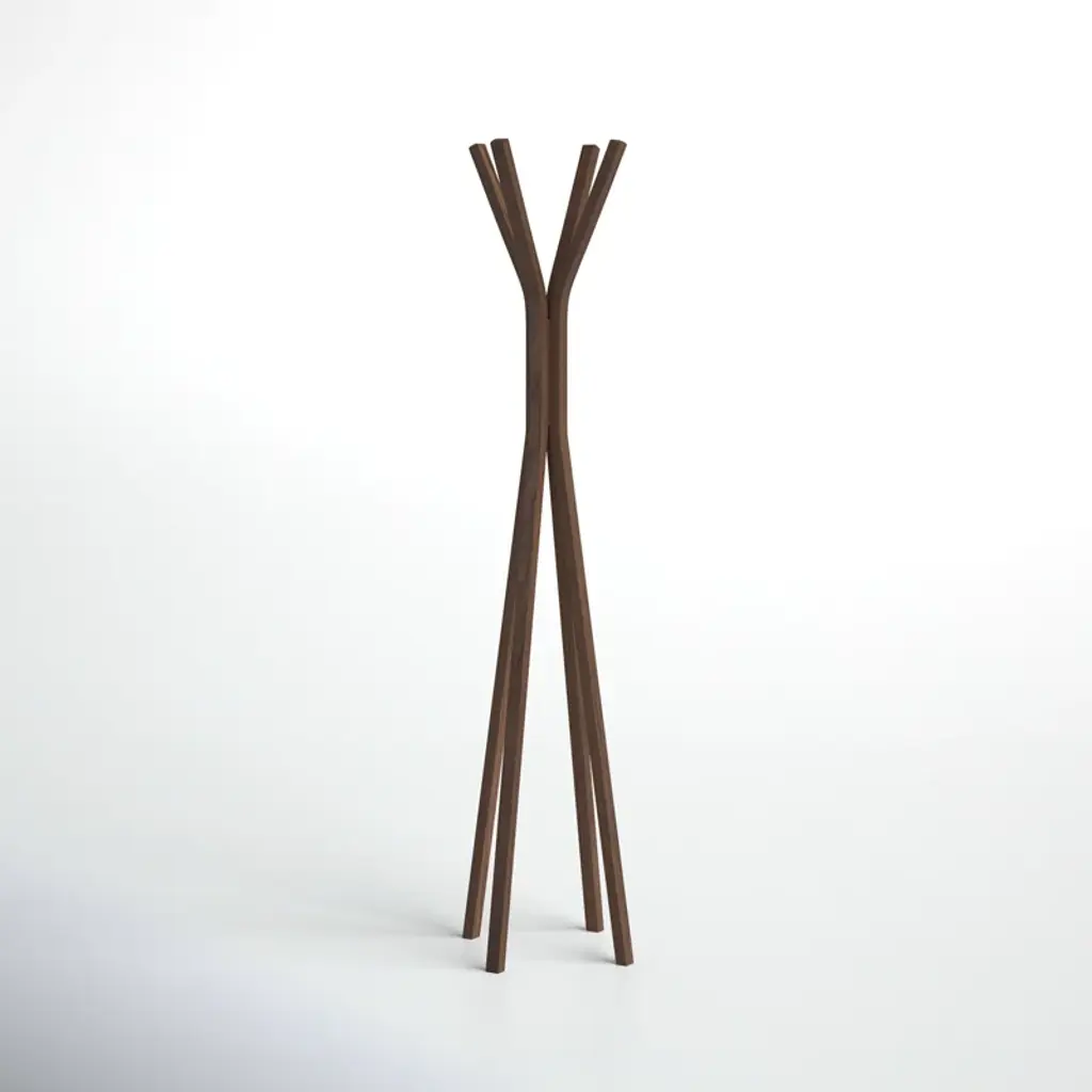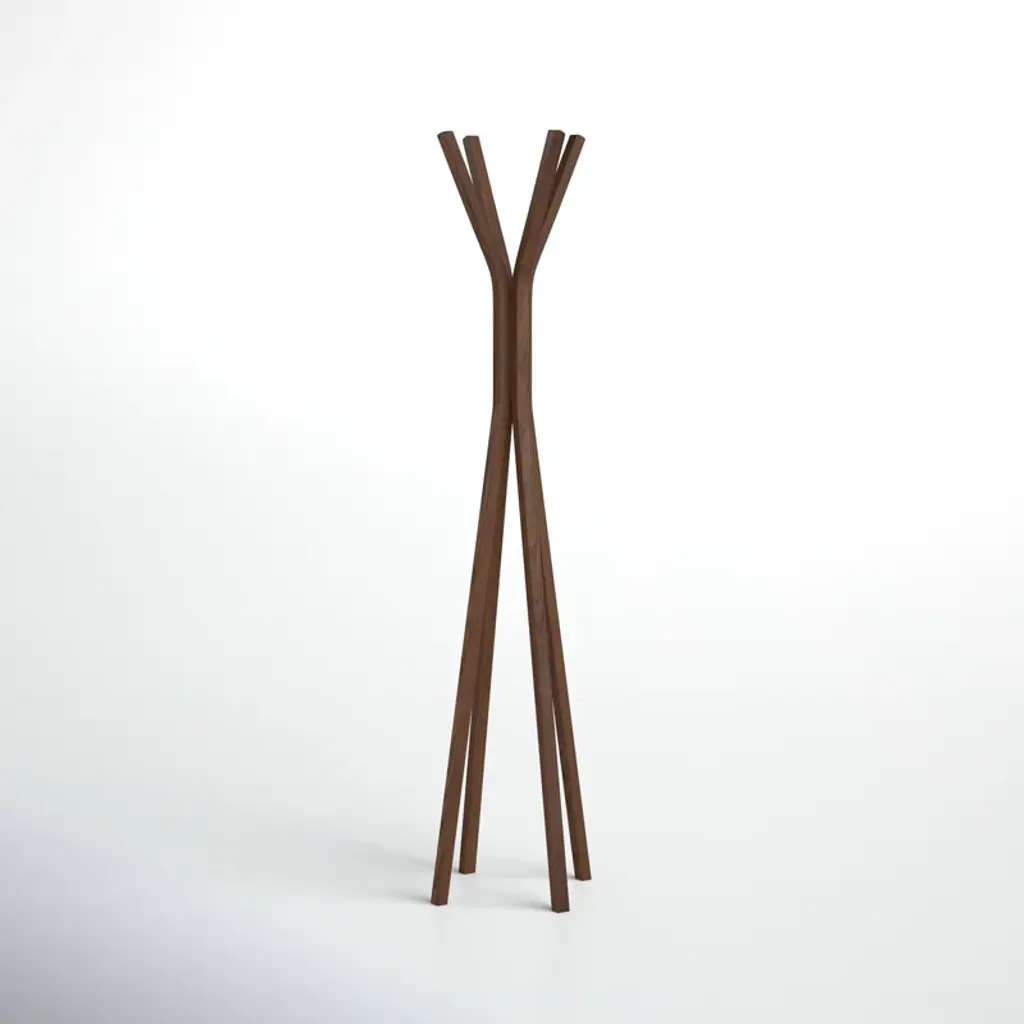 Sculptural storage. This scaled-back coat rack strikes a bold stick figure silhouette, with splayed legs for stability and outstretched arms ready to relieve you of your coat, hat, and bag. It’s crafted with rubberwood and engineered wood that layers an organic element onto its minimal lines.