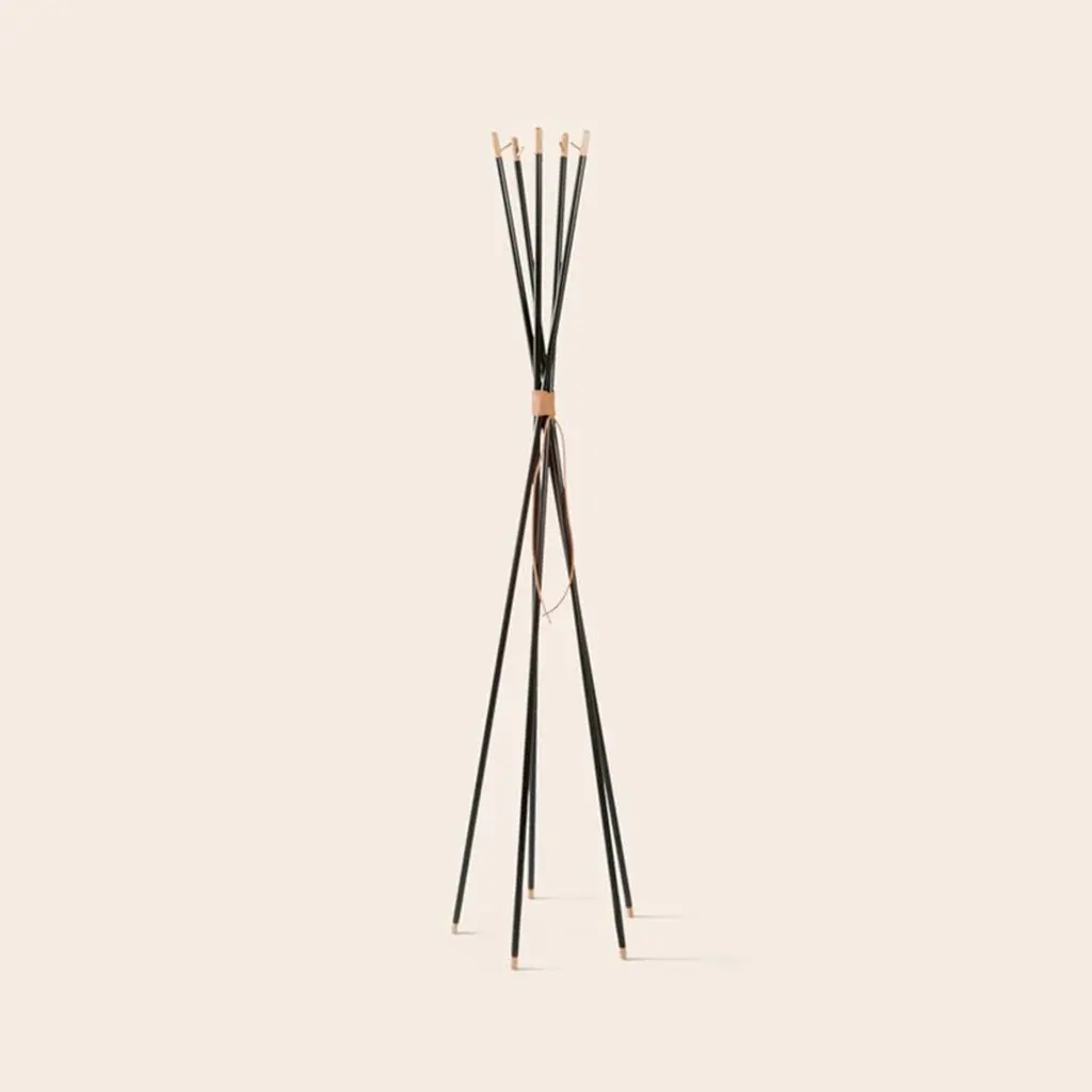 Gren coat stand by OxDenmarqDimensions: H 172 cmMaterials: Steel, leather, teak woodOX DENMARQ is a Danish design brand aspiring to make beautiful handmade furniture, accessories and lighting in natural high-quality materials in fair prices. " When we set out back in 2003, we were primarily working with vegetable-tanned saddle leather thus the name OX was a tribute to our unique leather and the animal providing it.The other half of our name, DENMARQ, is chosen to emphasize that we are a Danish design brand based on the Danish design tradition and that most of our furniture is produced in Denmark. However, DENMARQ not only refers to our home country, but also to the co-founder and designer - DENnis MARQuart.Before finishing his design studies at the Copenhagen Design University, Dennis Marquart did a Blacksmith education. This background is extremely useful when developing and designing products."OX DENMARQ handmade products will only get more beautiful as time passes and natural patina sets in.Many OX products are shaped around marble or vegetable-tanned saddle leather. Stone and leather are materials that will, and should, get marks over time. But they will also age with a very special beauty. When you learn to appreciate the beauty of maturity and of time passing, you have learned to appreciate patina the way it should be appreciated.