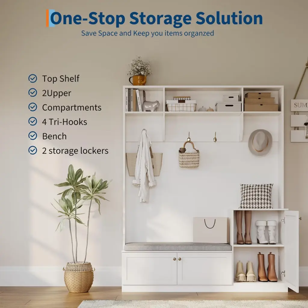 Hassle-Free Assembly: Setting up your mudroom bench with storage and hooks is quick and easy with clear instructions and labeled parts. Get your new shoe rack with coat rack assembled in no time, so you can enjoy a cleaner, more organized entryway bench with coat rack faster