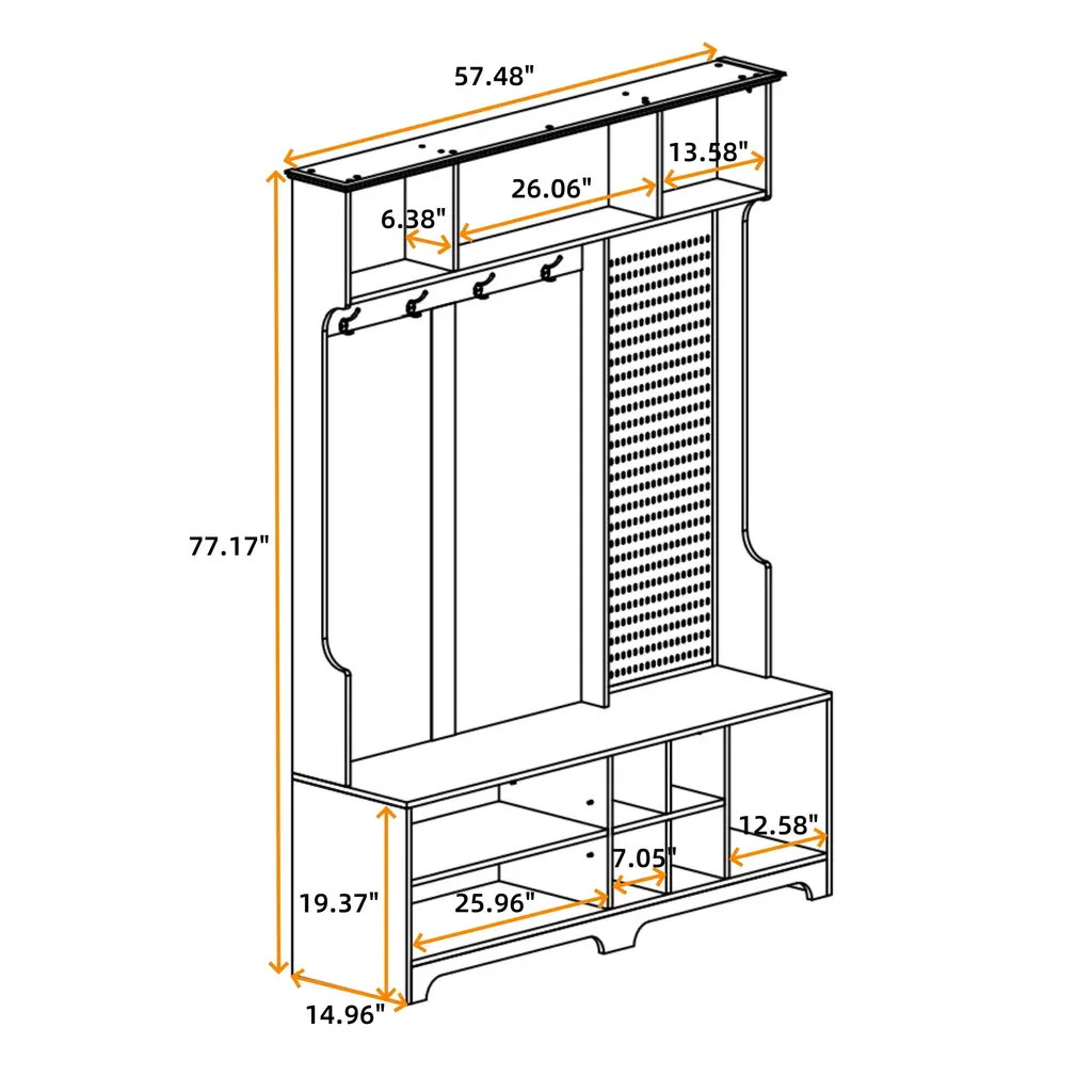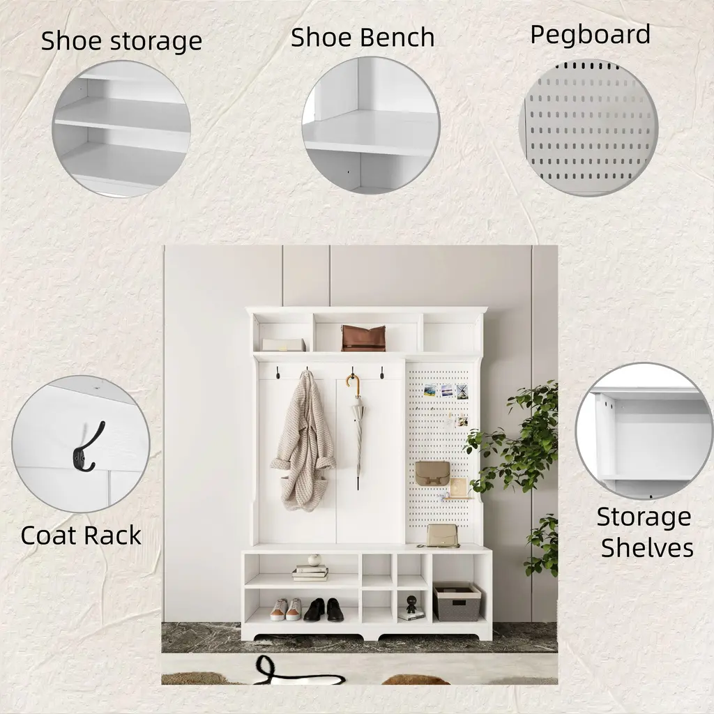 Hall Tree With Shoe Bench,coat Rack,shoe Storage,storage Shelves And Pegboard For Hallways,halls And Bedrooms - White