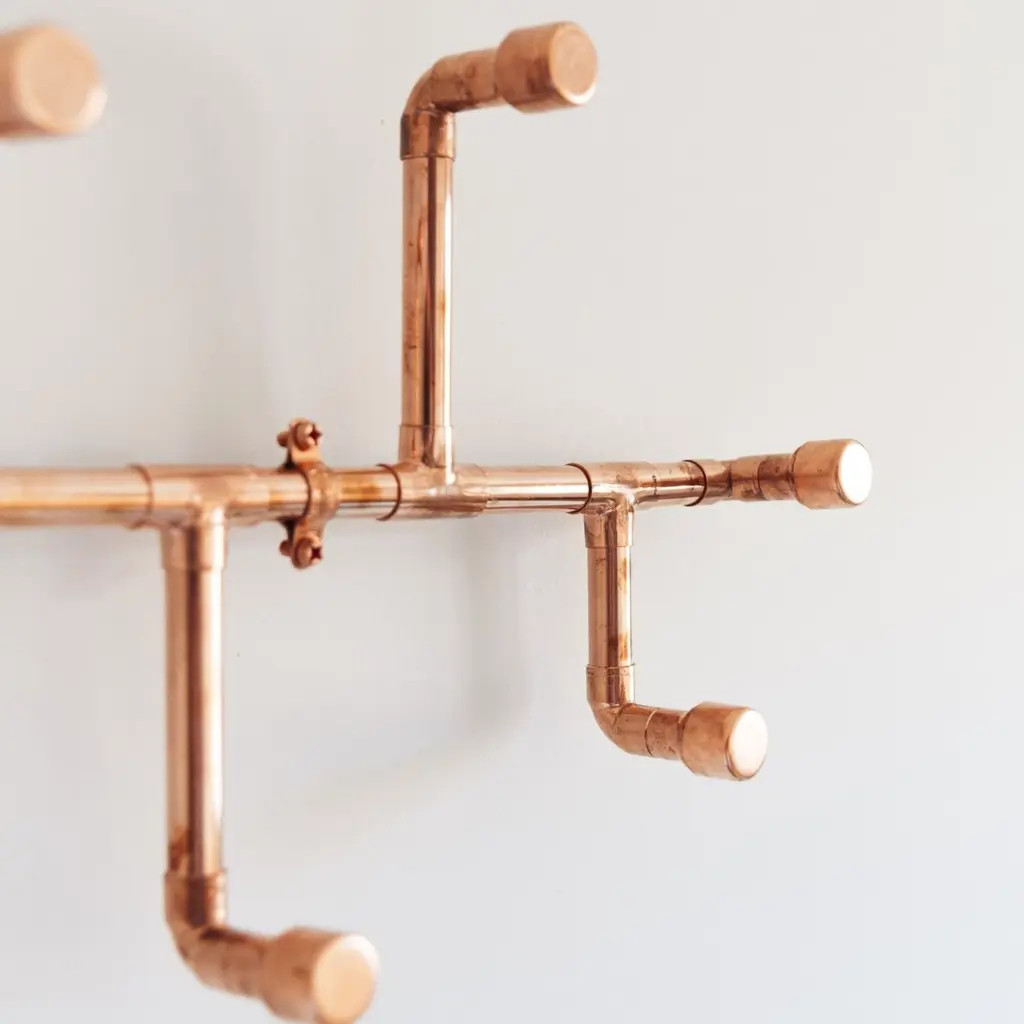 Elevate your entryway or hallway with the sophisticated charm of the Copper Hat & Coat Rack. This stylish and functional piece is expertly crafted from high-quality copper, offering a warm, luxurious finish that adds a touch of elegance to any space. The sleek design combines practicality with a modern aesthetic, providing ample space to hang your hats, coats, and accessories. Perfect for organizing your outerwear while enhancing your décor, this copper rack is both a practical solution and a statement piece that brings a refined touch to your home.