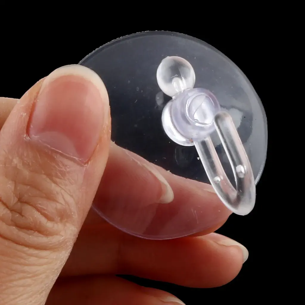 Prodcut Name : Suction Cup Hook;Material : PlasticColor : Clear;Suction Cup Diameter : 40mm/ 1.57"Hook Height : 3cm/ 1.2"Net Weight : 38gPackage Content : 5 x Suction Cup Hook Hanger Installation sites: Smooth surface (tile,glass ,graite ,stainless steel , plates and so on. No nails, No holes at wall. Applicated in kitchen, washroom, bedroom, wardrobe and so on. Usage: Clean the surface of the wall with a dry cloth, then put the black cup hardly until it sucks the surface. Loaded booster board, Tightened up plastic triangle, put a small iron.