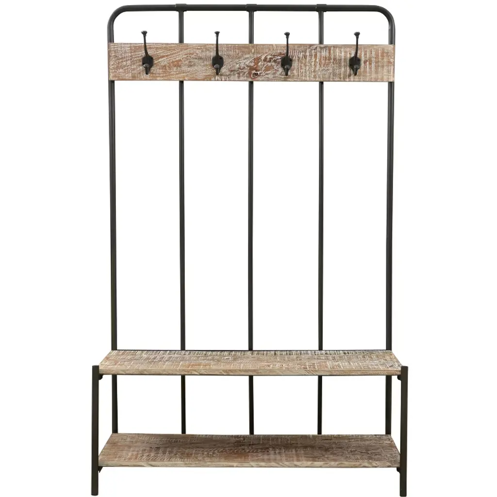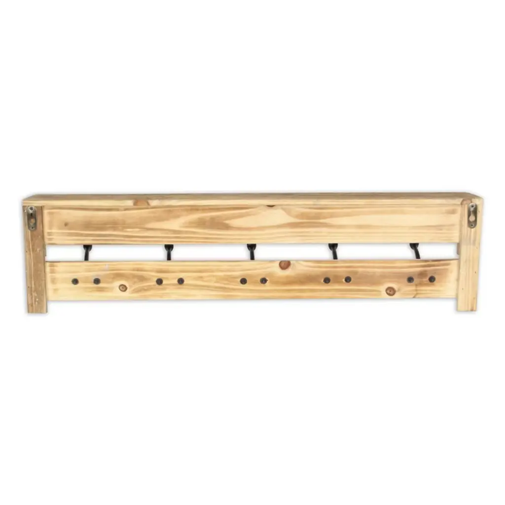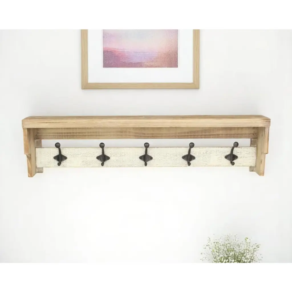 Homeroots 32" Natural Wood Five Hook Wall Mount Coat Rack