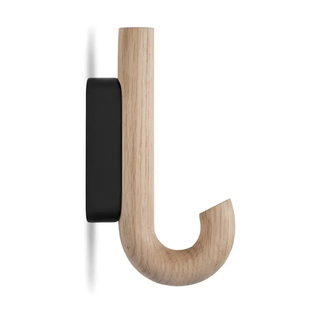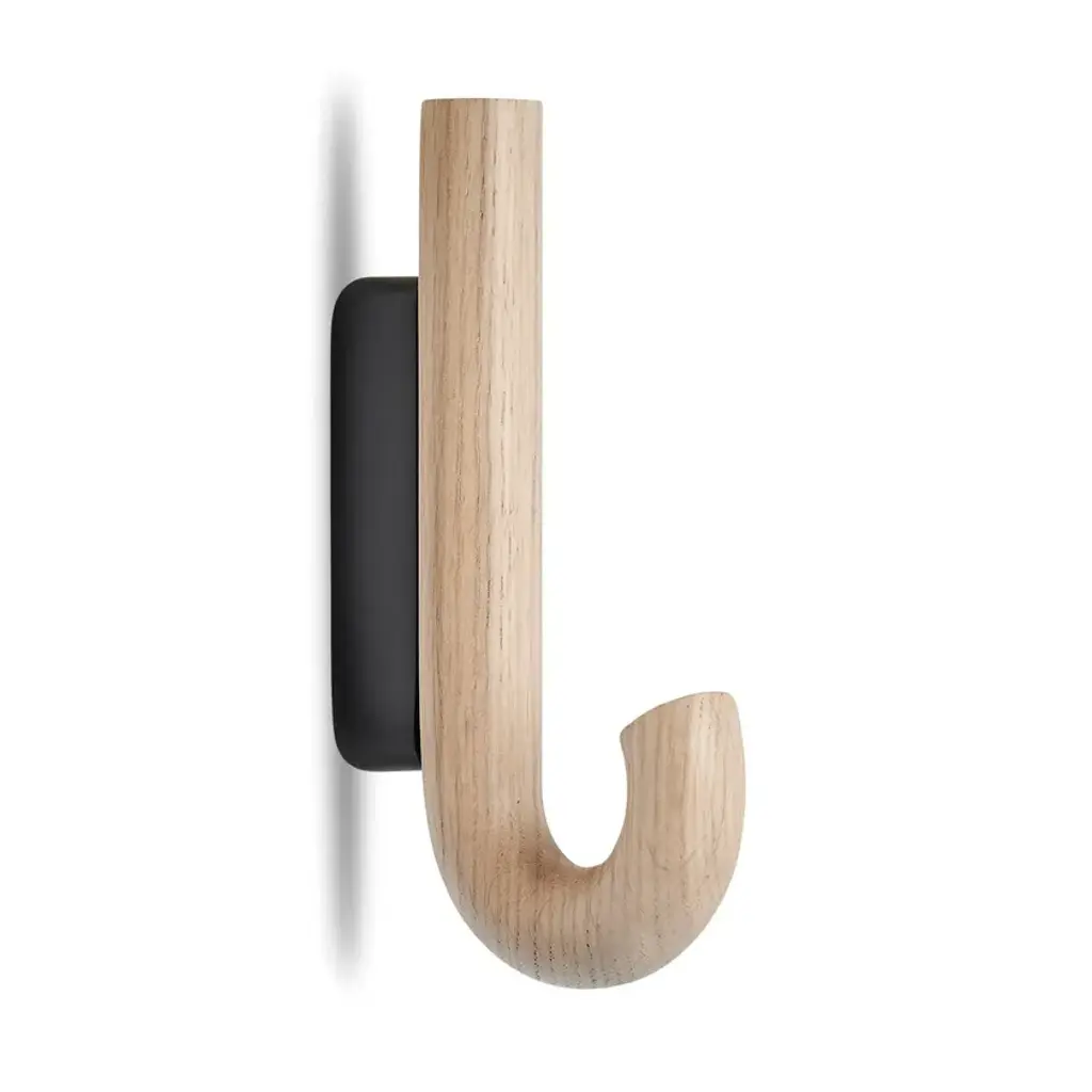 Hook mini is a discreet and beautiful addition to your home interior. The straightforward design invites everyone to hang their jackets, bags, or umbrellas in the hallway. Hook mini can also hold tea towels or aprons in your kitchen or organize towels and bathrobes in your bathroom. The hangers are available in black oak, warm walnut or oak treated with white pigment and matt lacquer, all with beautiful details in wood, while the fittings are available in brass, chrome, and black metal.Available models:Oak Brass 10240Oak Chrome 10241Oak Black 10242Black Oak Brass 10243Black Oak Chrome 10244Black Oak Black 10245Walnut Brass 10246Walnut Chrome 10247Walnut Black 10248