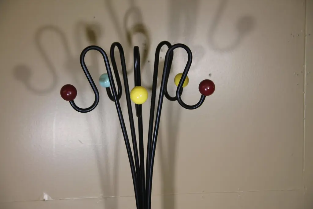 Great Italian hat rack. This was an old new stock frame and wood balls that have been newly painted. Frames were imported into the USA in the 1960s and remained untouched until we acquired them.