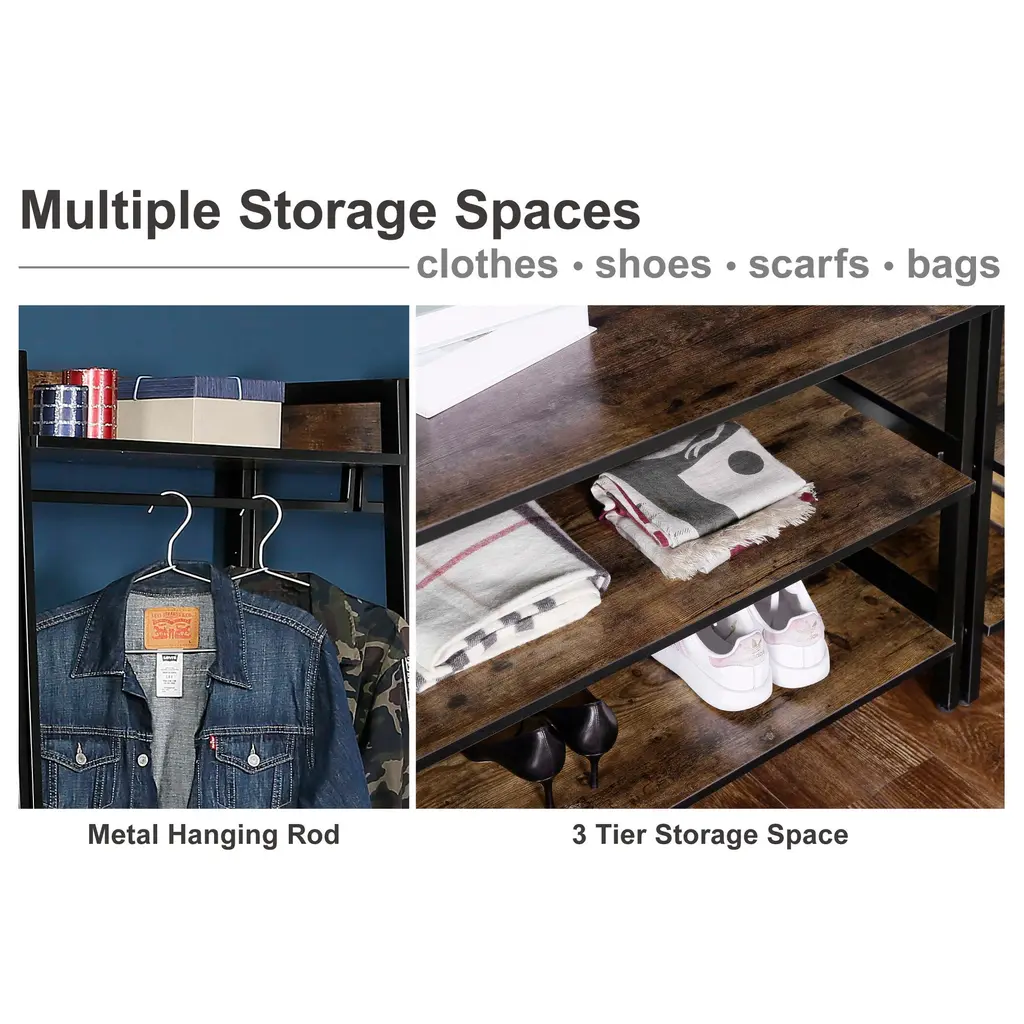 Jjs Industrial Rustic Coat Rack & Shoe Stool Entryway Hall Tree With Storage Drawers & Shelves Rustic Brown - 25.2"