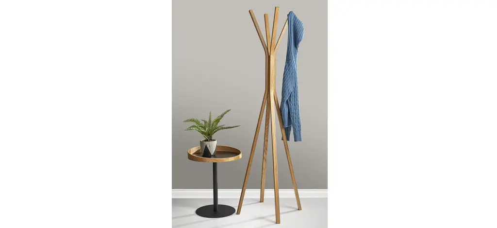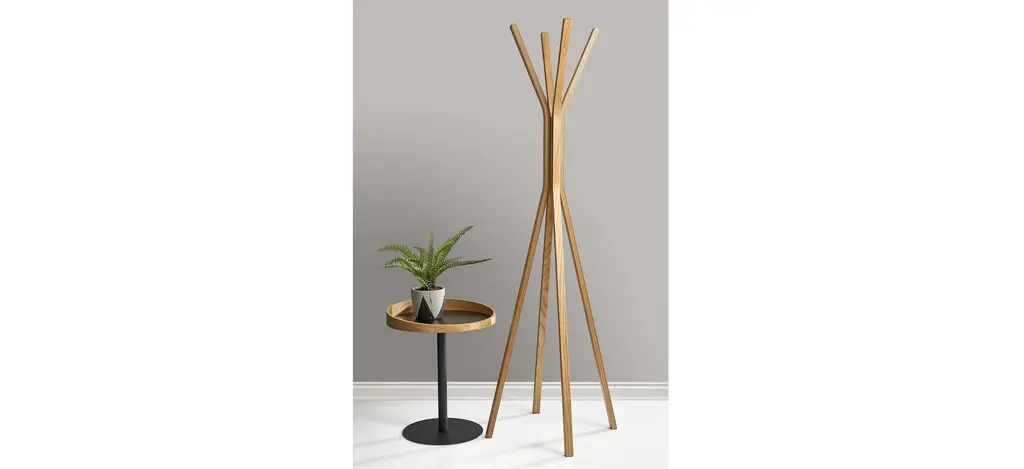A functional and stylish addition to your entry way, the Kagamihara Coat Rack is a modern Scandinavian statement. Four coat hooks are crafted of layered furniture-grade plywood with a natural oak wood veneer on the outer layers. A 16.5" square footprint gives this coat rack a sturdy stance.