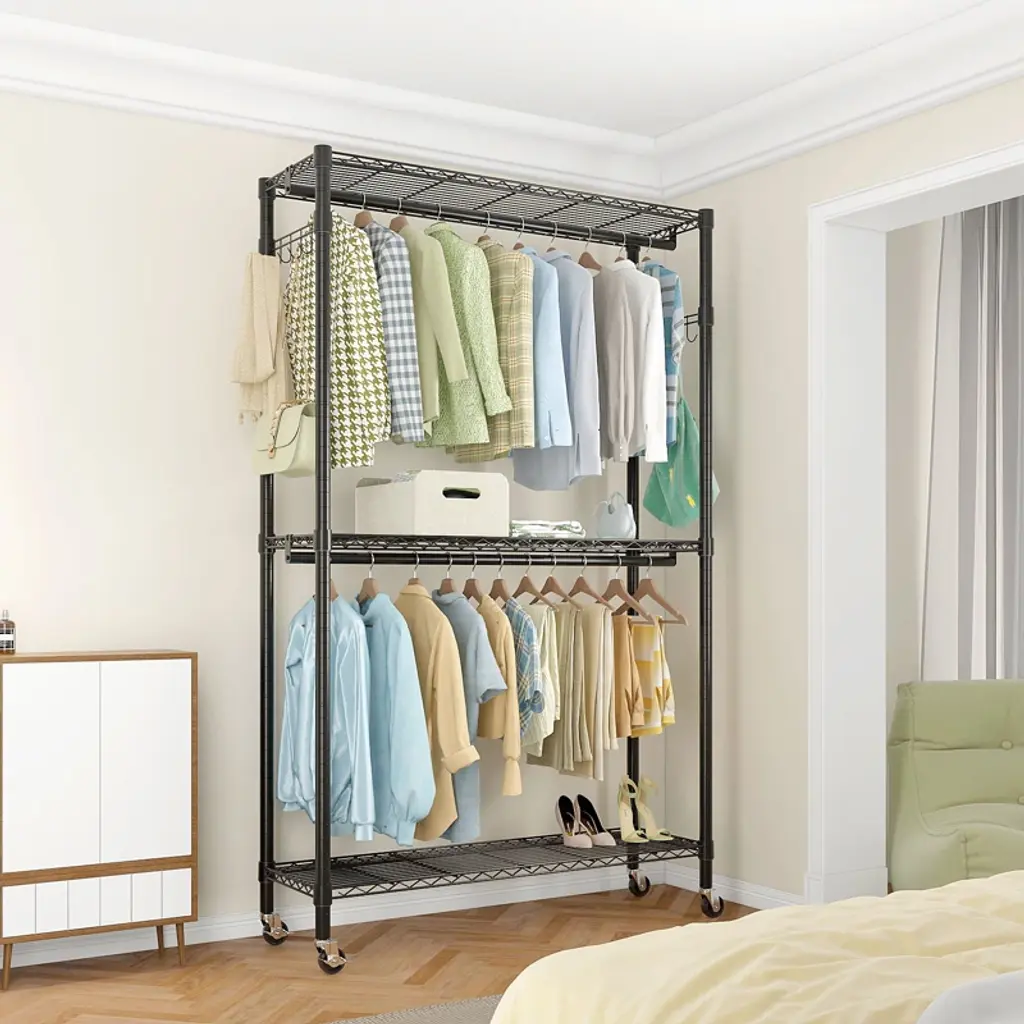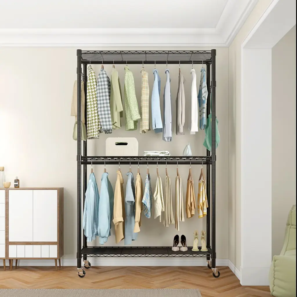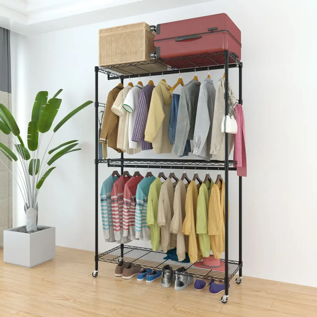 Karl Home Black Carbon Steel Coat Rack With Double Mesh Panels 47.2x17.7x78.7 Inches Adjustable Layer Spacing