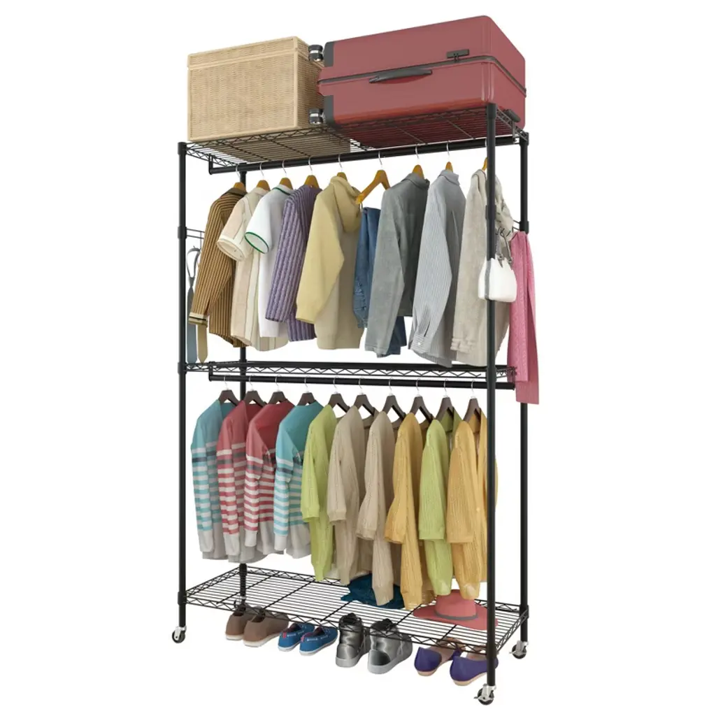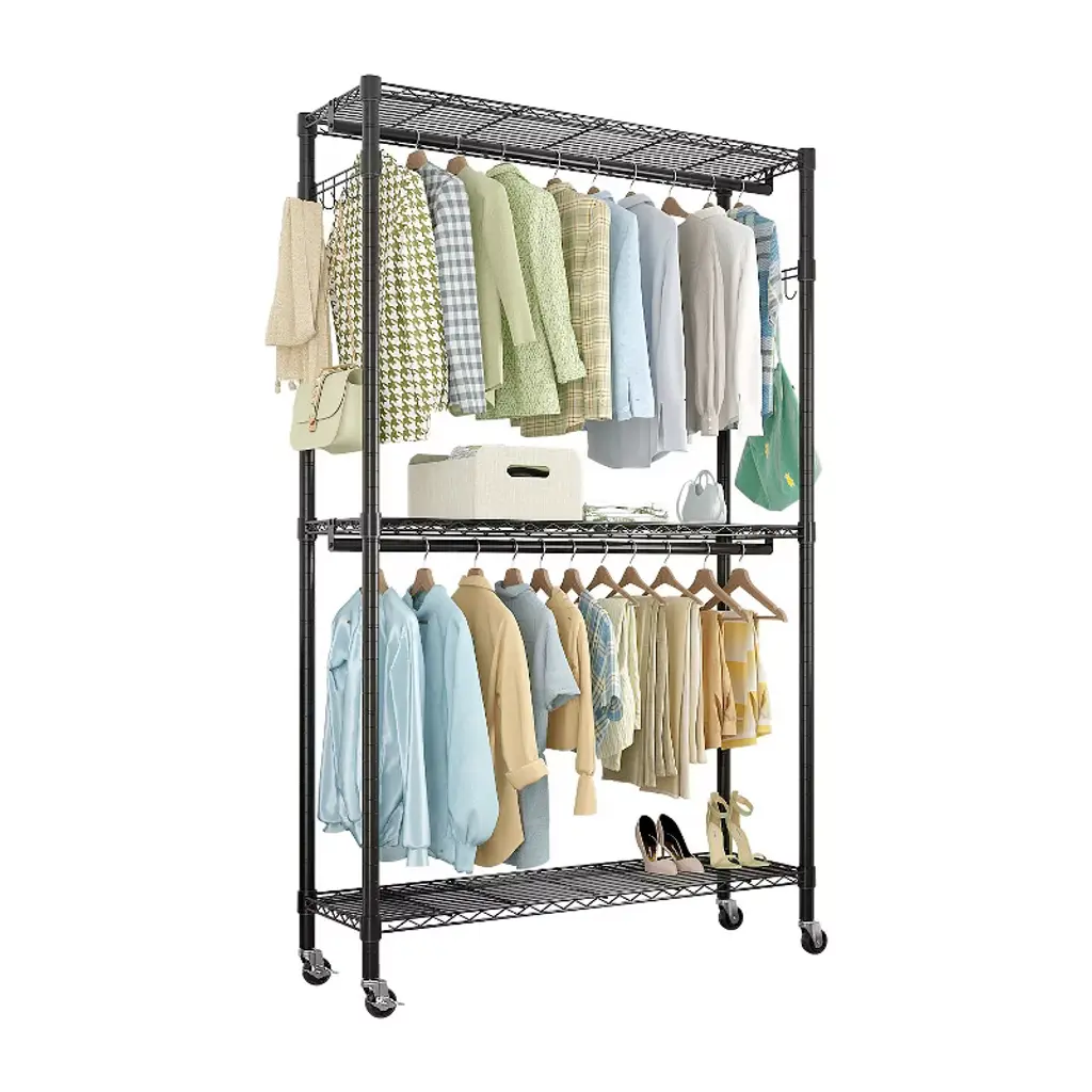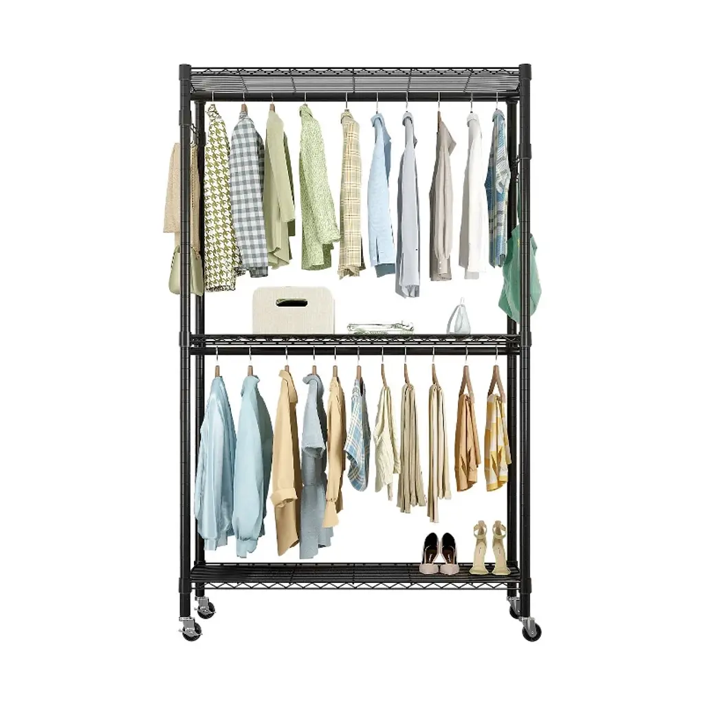Karl Home Black Carbon Steel Coat Rack With Double Mesh Panels 47.2x17.7x78.7 Inches Adjustable Layer Spacing