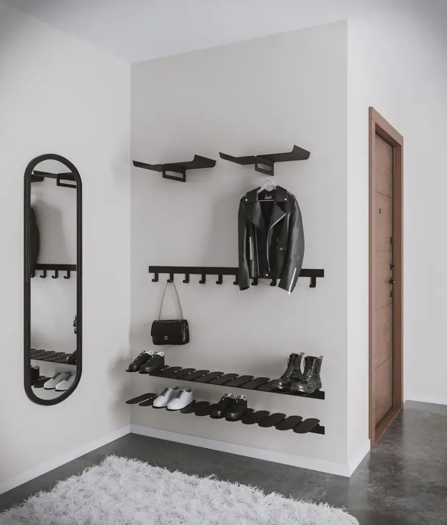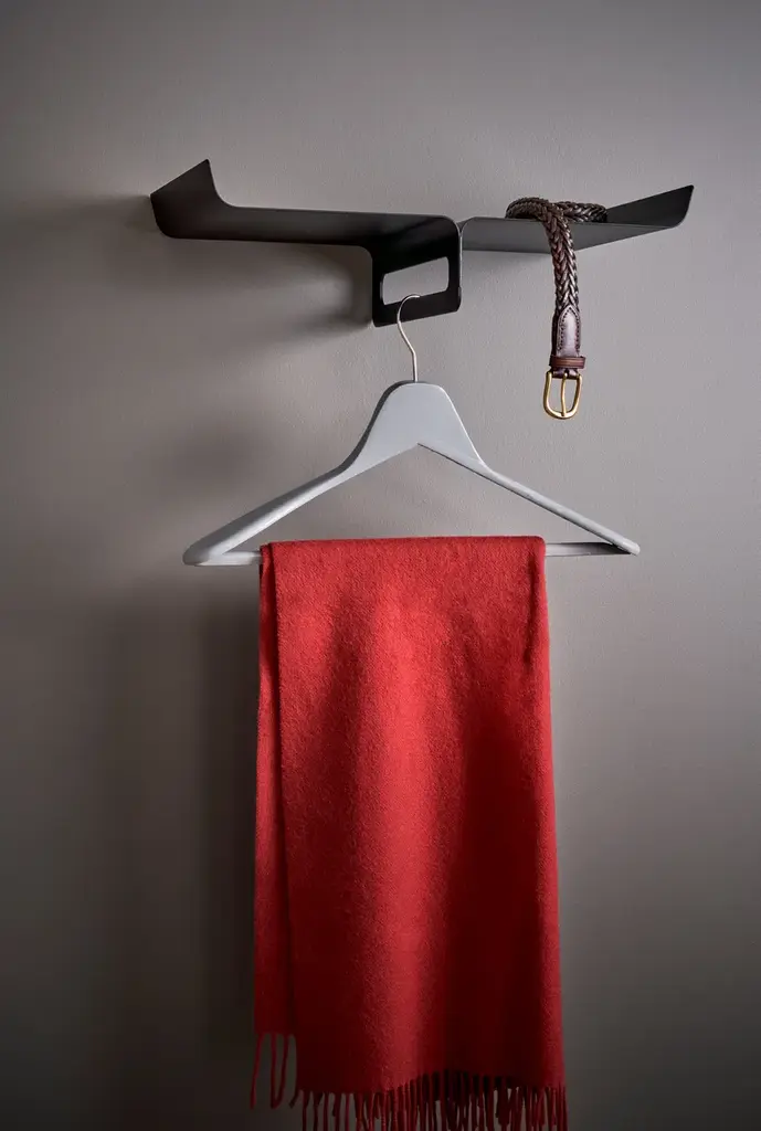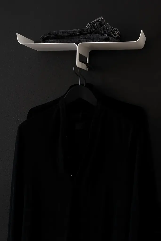 Kite is a minimalistic hat rack with a floating feel that elevate every hallway.Material: Powder coated metal wireManufactured: SwedenGraphic is cut out furniture which mimic its purpose. Metal and wood with clean sharp lines – straight from the drawing board to your home.Slow Production in Graphic:The Graphic collection is made of partly recycled powder coated metal. The design and function is formed to fit everyone's home for a very long time.