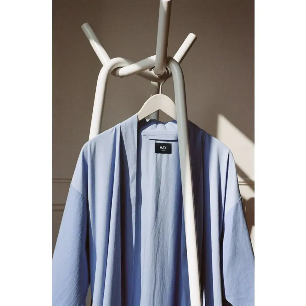 HAY’s Knit coat rack is a minimalist yet playful piece of design by Japanese Jin Kuramoto. The personal and three-dimensional hanging option is created from three powder-coated steel pipes connected by a characteristic “knit”. Finished with a glossy surface, the sculptural coat rack charms in the hallway, lobby or bedroom and brings the extra storage space for clothes and accessories.