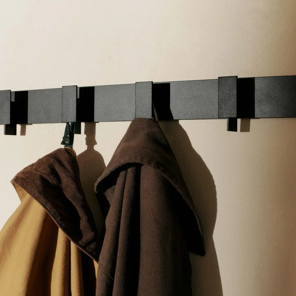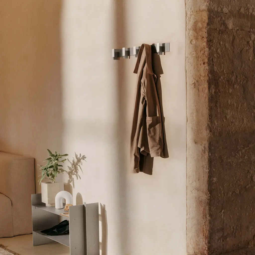 Transform your hallway into a refined and functional space with the Lager Coat Rack from Ferm Living. Inspired by the industrial aesthetic of brutalism, this sleek and sophisticated coat rack is crafted from brushed aluminum sheets. Its minimalist design offers a chic and durable solution for hanging jackets and coats. Highlights