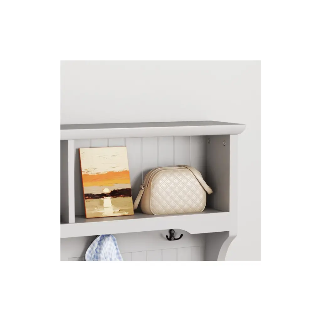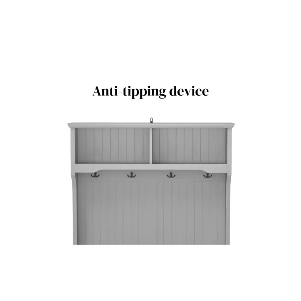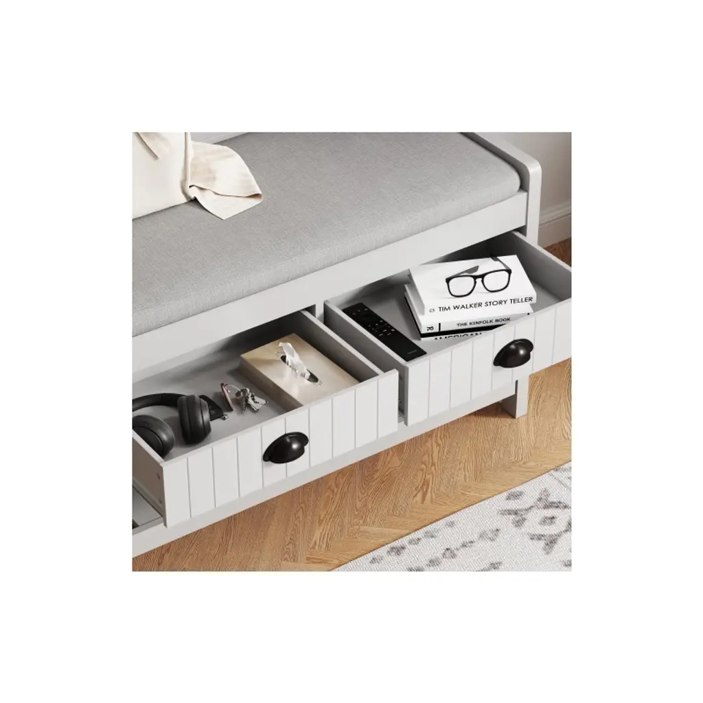 Elastic Sponge Cushion It is filled with high-quality sponge with good resilience, allowing you to change your shoes and get a comfortable experience when resting 2 Storage Drawers 2 slide drawers keep your foyer organized with the essentials you need to go out 4 Metal Hooks 4 metal hooks to hang your clothes, bags, hats and more 2 Storage Top Shelves The two storage shelves on the top can be used to store potted plants, bags, books, etc